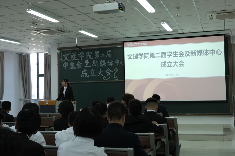 2018年9月28日,文理学院召开了第二届学生会暨新媒体中心成立大会,参加本次会议的有文理学院专职副书记徐长亮、文理学院辅导员王均涛、辅导员付璇以及文理学院学生会和新媒体中心第二届全体成员。本次会议由学生会文体部部长王婷主持。
