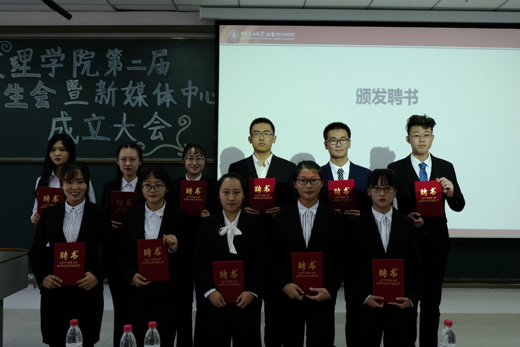 文理学院学生会和新媒体中心部长代表、部委代表分别发言。专职副书记徐长亮、辅导员王均涛、辅导员付璇分别为学生会主席团及新媒体中心负责人、全体正副部长颁发了聘书并致辞。三位老师殷殷切切,对上一年的成绩表达了肯定,对现在的状态表示了鼓励,对未来的发展表示了期盼,希望学生会与新媒体中心的各位能够提升自我,工作学习两不误,能够以更好的姿态来为大家服务。