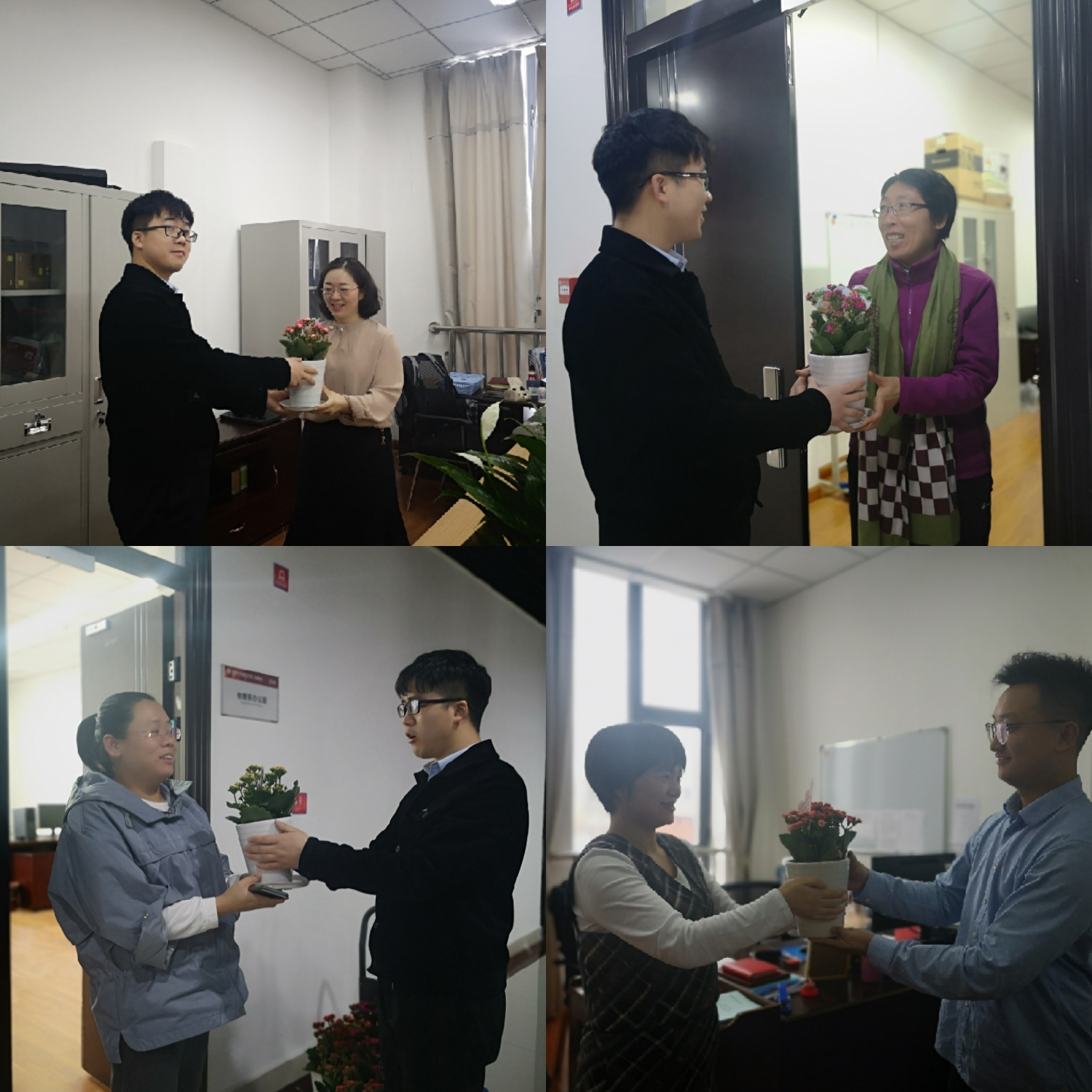 3月8日,初春的清晨仍透着几分寒意,校区文理学院内到处洋溢着温暖的气息,特别是女教职工们的心里更是充满了暖意。学院工会小组成员将一盆盆鲜花和亲手写下的祝福卡片送到了每一位女教师的办公室并且为她们送上了节日的祝福。