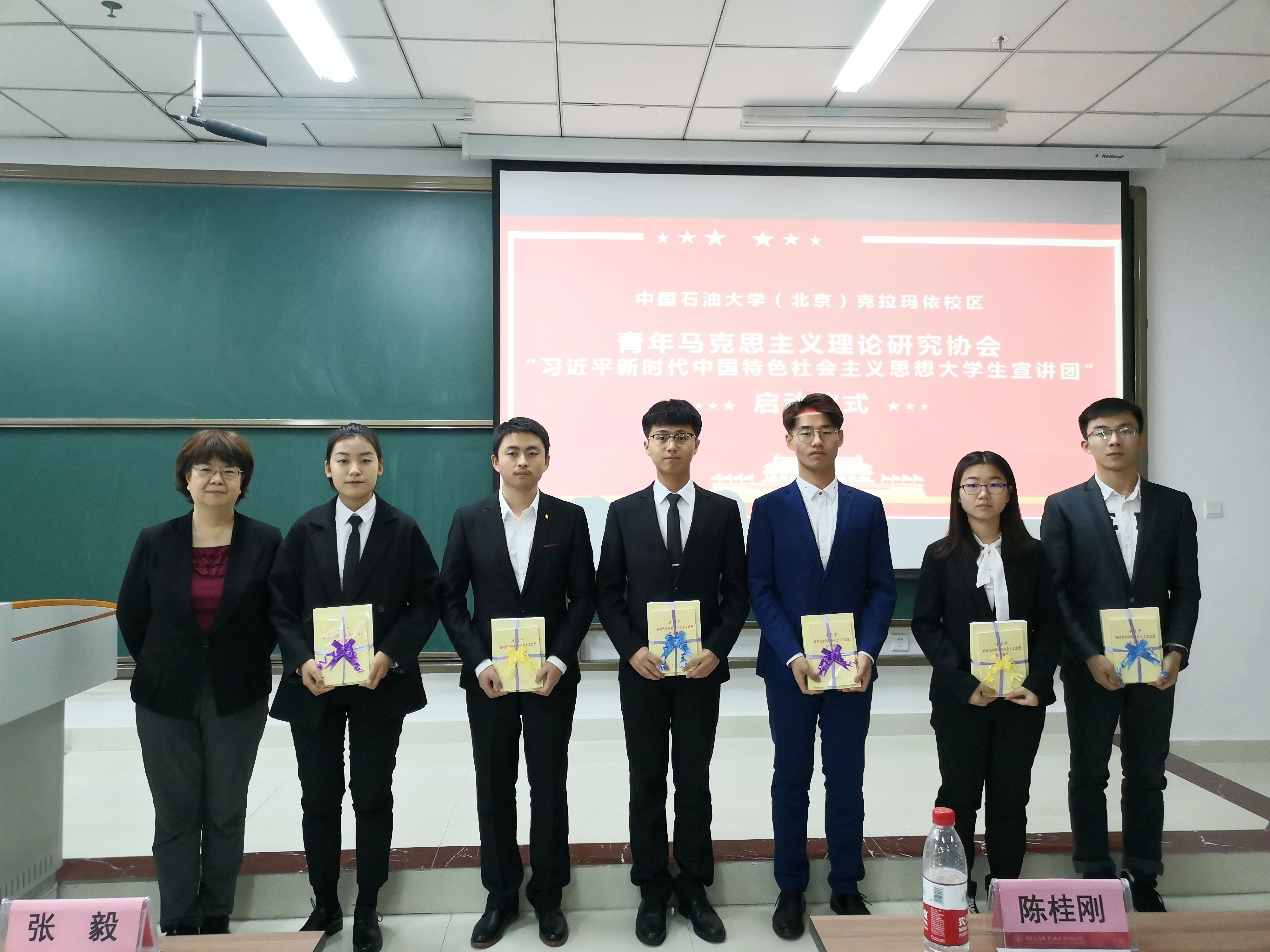 11月28日下午,中国石油大学(北京)克拉玛依校区青年马克思主义理论研究协会“习近平新时代中国特色社会主义思想大学生宣讲团”启动仪式在C5崇文楼举行。校区党工委常务副书记陈桂刚,文理学院院长张毅,副院长高洁,专职副书记徐长亮,团总支书记付璇,马克思主义与人文社科系教师代表、青年马克思主义理论研究协会学生和50余名学生入党积极分子参加了此次活动。活动由马克思主义与人文社科系主任张新国主持。