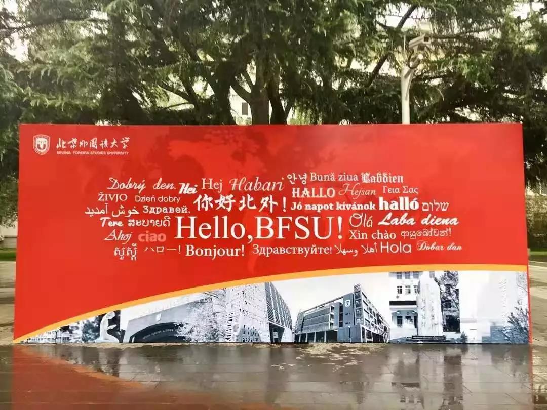北京外国语大学坐落在北京市海淀区西三环北路,在三环路两侧分设东、西两个校区,我们上课的地方在西校区的国际大厦,而住宿以及平时的活动则在东校区。