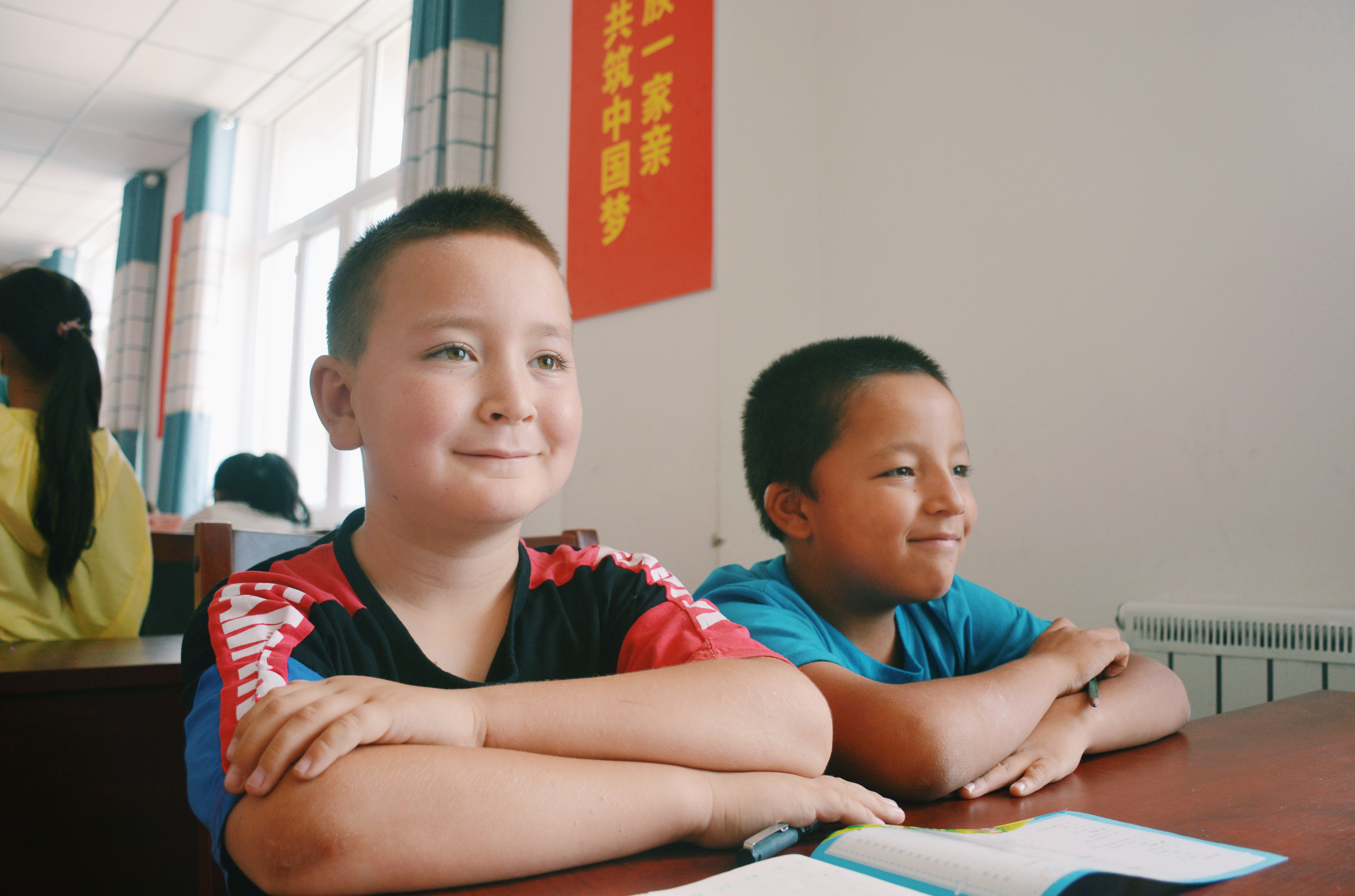社区领导与学院领导为大学生志愿服务基地揭牌,孙宜宏女士代表绿翔牧业有限责任公司为社区儿童和志愿者捐赠了学习用品和书籍。仪式结束后,参加活动的各位领导嘉宾一起参观了支教课堂。