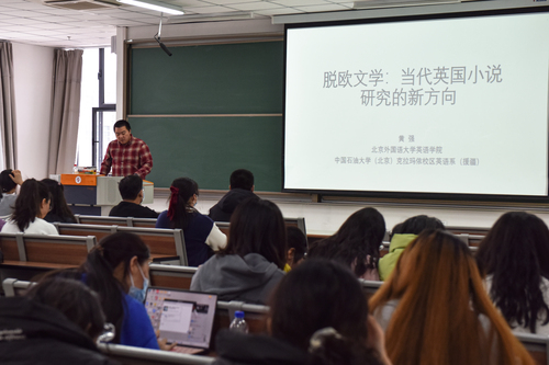 3月4日下午,文理学院崇文讲堂第三十四期在C5崇文楼I区401教室举行。北京外国语大学英语学院援建教师黄强作了题为《脱欧文学——当代英国小说研究的新方向》的讲座,文理学院外语系青年教师、英语专业全体学生参加了此次讲座。