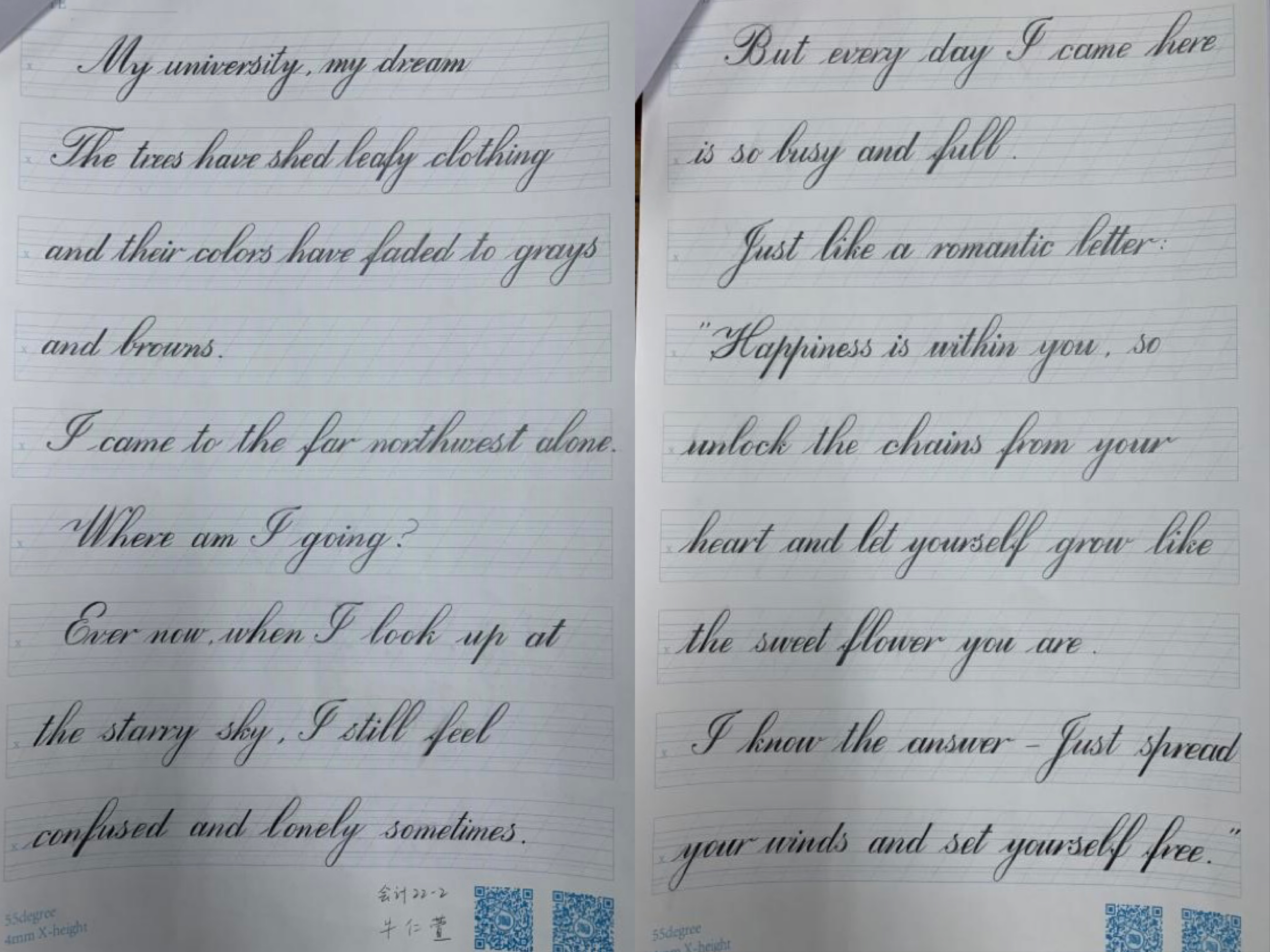 为了丰富同学们的英语学习形式和课余生活,提高同学们学习英语的积极性,给我校大学生提供一个展现自我、提升自我的机会和舞台,同时也是为了迎接和庆祝“党的二十大”的盛大召开,引导当代大学生在党领导下的新的历史时期中树立正确的人生观,价值观,提高同学们的英文书法水平和写作能力,文理学院外语系于10月1日—21日期间举办了校区首届“我的大学,我的梦”主题英文书法比赛。