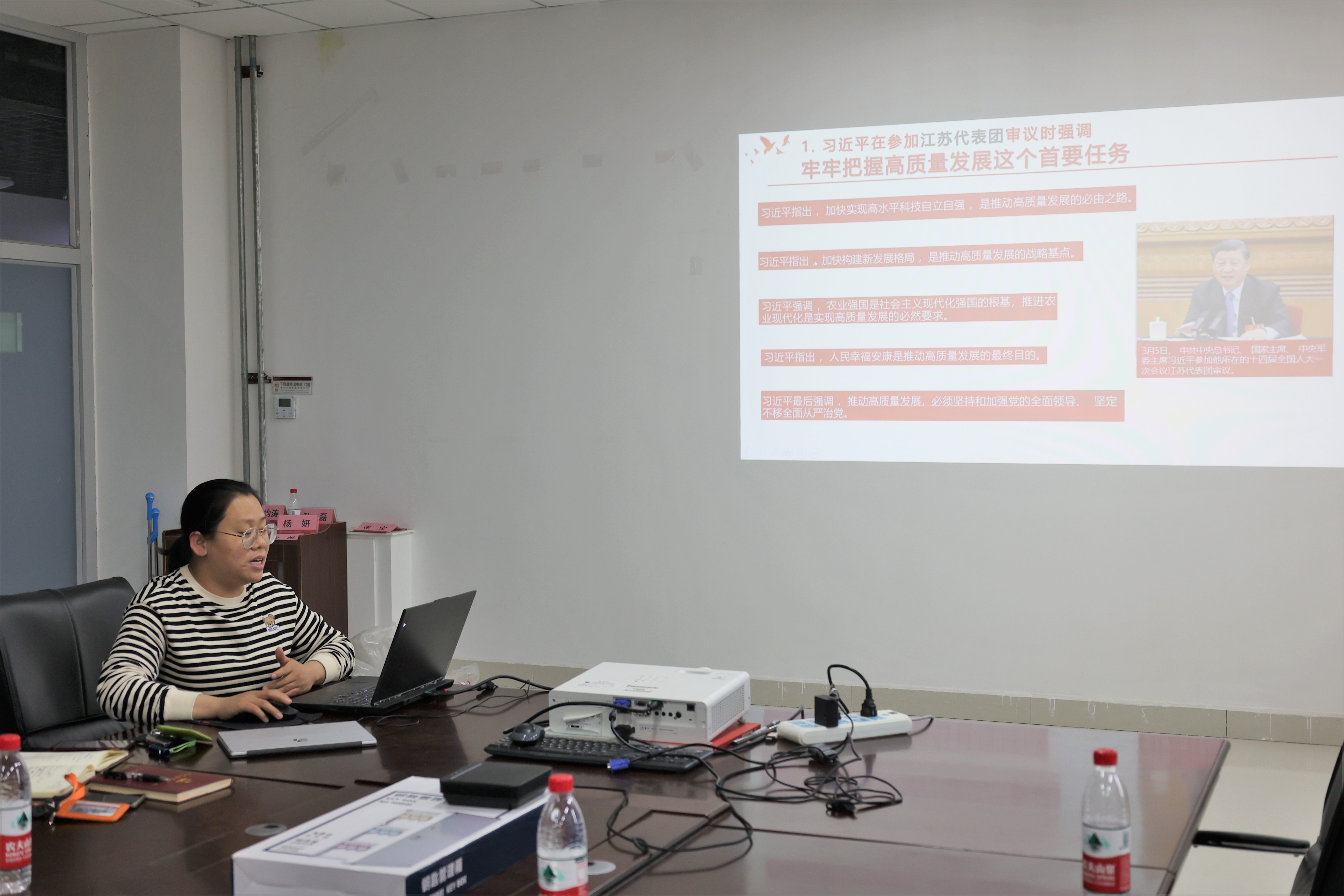 会议伊始,物理系党支部书记王晶晶老师为大家简单介绍了本次会议的主要内容,并带领全体老师研读了《2023年政府工作报告》、习近平总书记全国两会期间重要讲话精神以及《关于在全党大兴调查研究的工作方案》;接着数学系刘前芳老师为大家进行了课程思政教学案例分享,给大家在接下来要进行的学院课程思政教学案例大赛提供思路。
