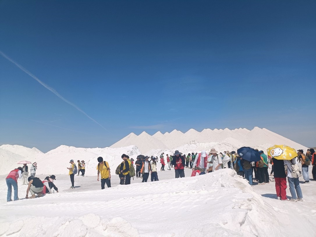 英语22-1班王梓晖:这次实践除了传统的话剧表演之外,还多出了景点翻译的外出活动,让我有机会和大家一起去到乌尔禾的几个著名景点。在为期三天的外出实践中,我们去到了我国可开采的唯一纯天然沥青矿,感受被风化的沥青的质感;我们去到了美丽的西部乌镇,感受西北大漠里的江南柔情;我们徒步领略魔鬼城的异域风情,惊叹大自然的鬼斧神工。洁白如雪的盐山在阳光下熠熠生辉,艾里克湖的碧波送来阵阵清凉。在这般美景面前,我们的词汇却如此匮乏,这更加坚定了我们不断充实自己的决心,此次外出活动实为一次收获之旅。