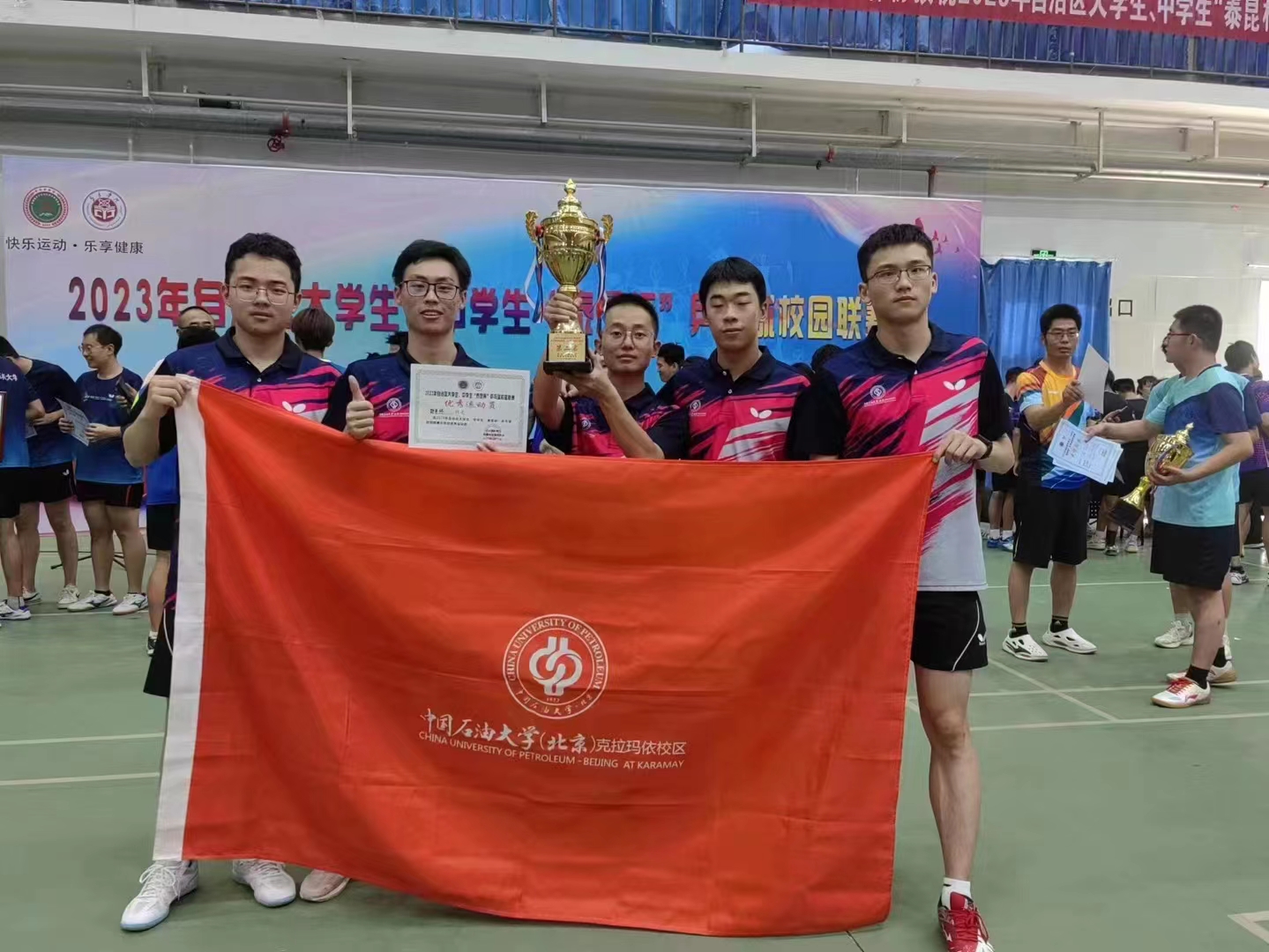 校区乒乓球队派出10名队员,由教授王建民担任主教练,体育系主任赵京辉带队参赛。男子团体代表队由邵书怀(2021级油气储运专业)、张佳豪(2021级化学工程与工艺专业)、吴玉洁(2021级软件工程专业)、吴彦斌(2022级油气储运专业)以及詹金炜(2022级经济学专业)组成,他们在比赛中团结一致、敢于拼搏,最终战胜新疆农业大学,获得男子团体亚军。