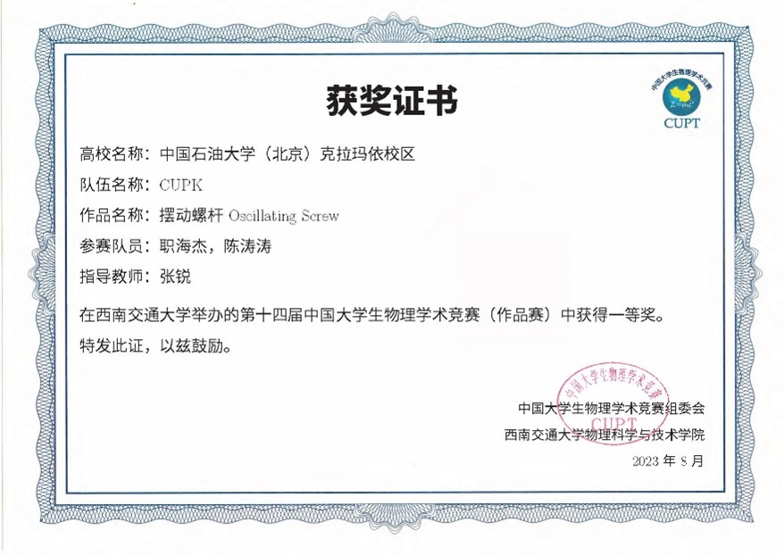 国家级一等奖 | CUPK | 职海杰 陈涛涛 | 张 锐 |
