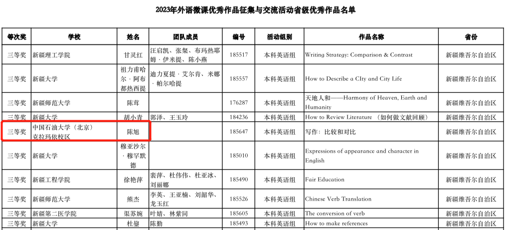 2023年8月31日,全国高等学院外语微课优秀作品征集与交流活动(原中国外语微课大赛)全国组委会公布省级优秀作品获奖名单。语言与艺术系俄语教研室姜岩岩老师带领的团队(成员:娜拉、臧伟晨)荣获“2023年外语微课优秀作品征集与交流活动”省级优秀作品二等奖;孙磊老师带领的团队(成员:郑晓婷、李博宇、李凯、刘璐)荣获省级优秀作品三等奖;英语教研室陈旭老师荣获省级优秀作品三等奖。