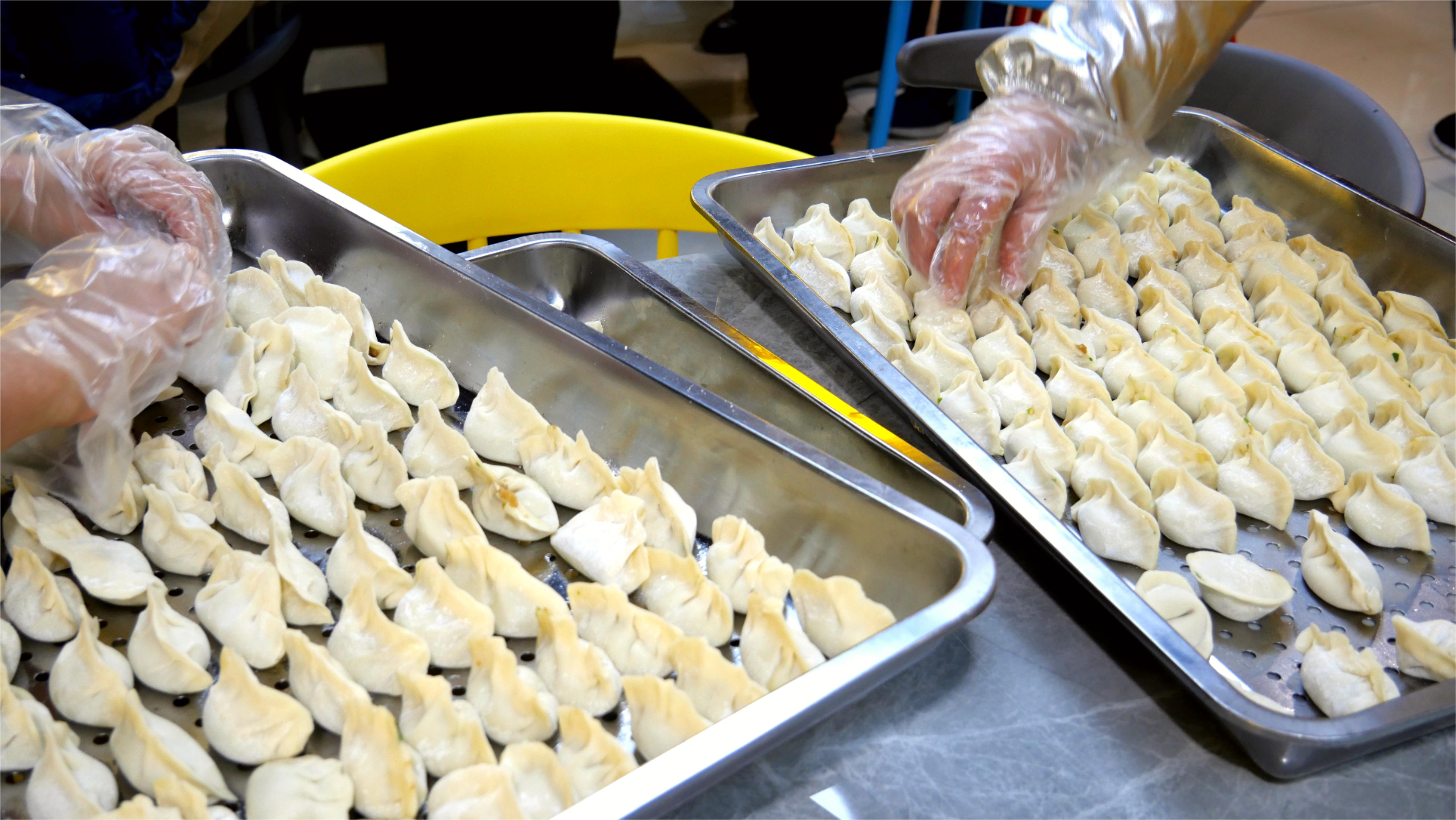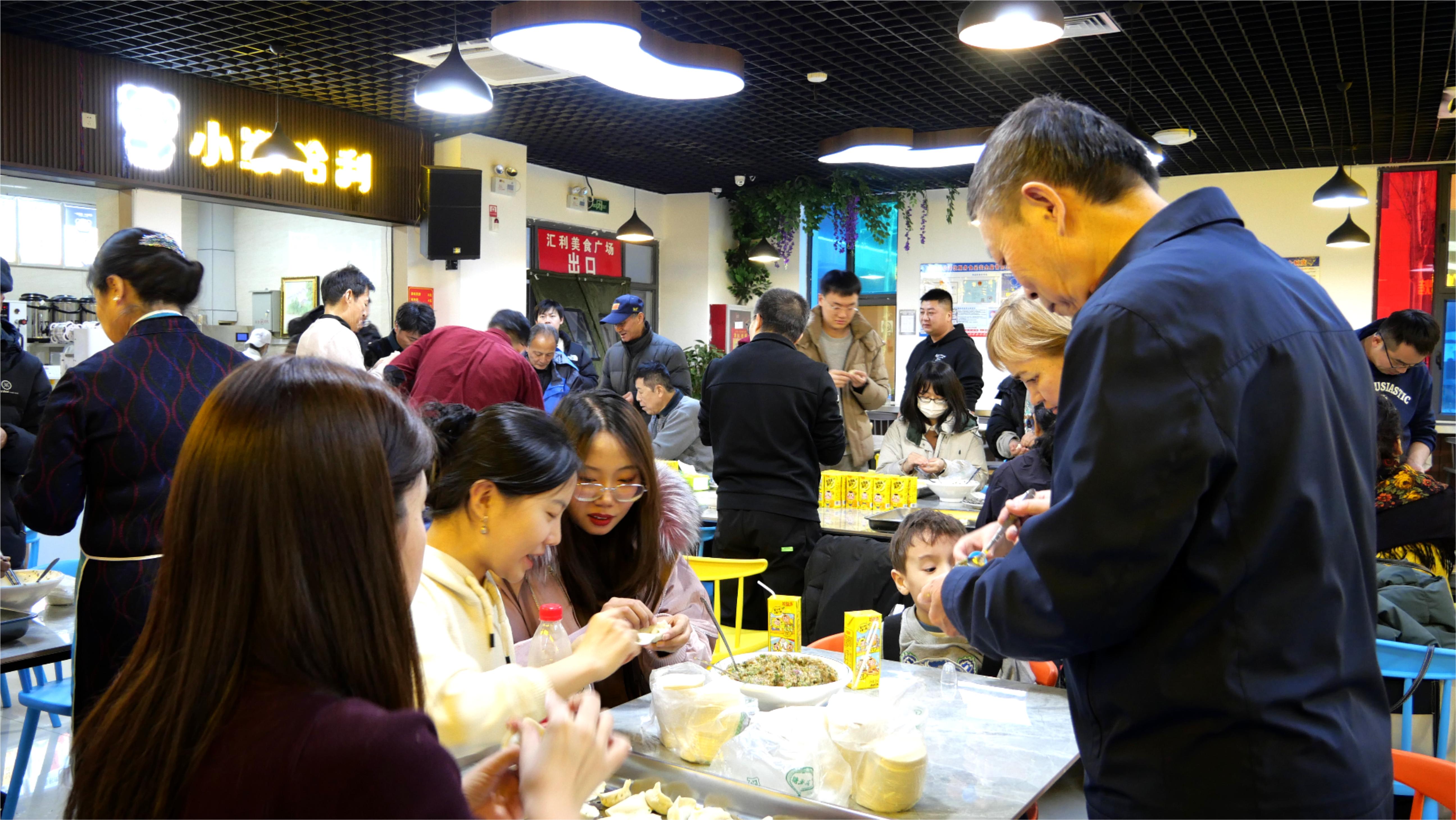 早在活动开始前,汇利美食广场的员工们精心布置了场地,在桌子上摆放好了各种小吃和饮料,营造出了温馨的氛围。大家满心期待地围坐在一起,亲手包起了饺子。丰富多样的馅料让教职工们充分发挥了创造力,他们互相交流着包饺子的技巧,笑声和谈话声充斥着整个场地。