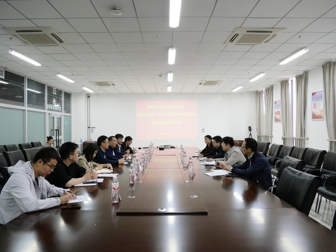 曹立砥代表西安电子科技大学发表了讲话,他对校区扎根西部办学、立足培养“可堪大用 能担重任”的人才培养目标表示高度赞赏。他对校区在克拉玛依办学给予了高度的肯定,他表示,校区必将促进区域经济社会发展,对石油石化产业技术升级和能源行业转型发展新质生产力起着巨大的推动作用。他表示,两个学院合作共建协议的签署是两校深化合作交流的体现,也将进一步推进两校合作的深度。