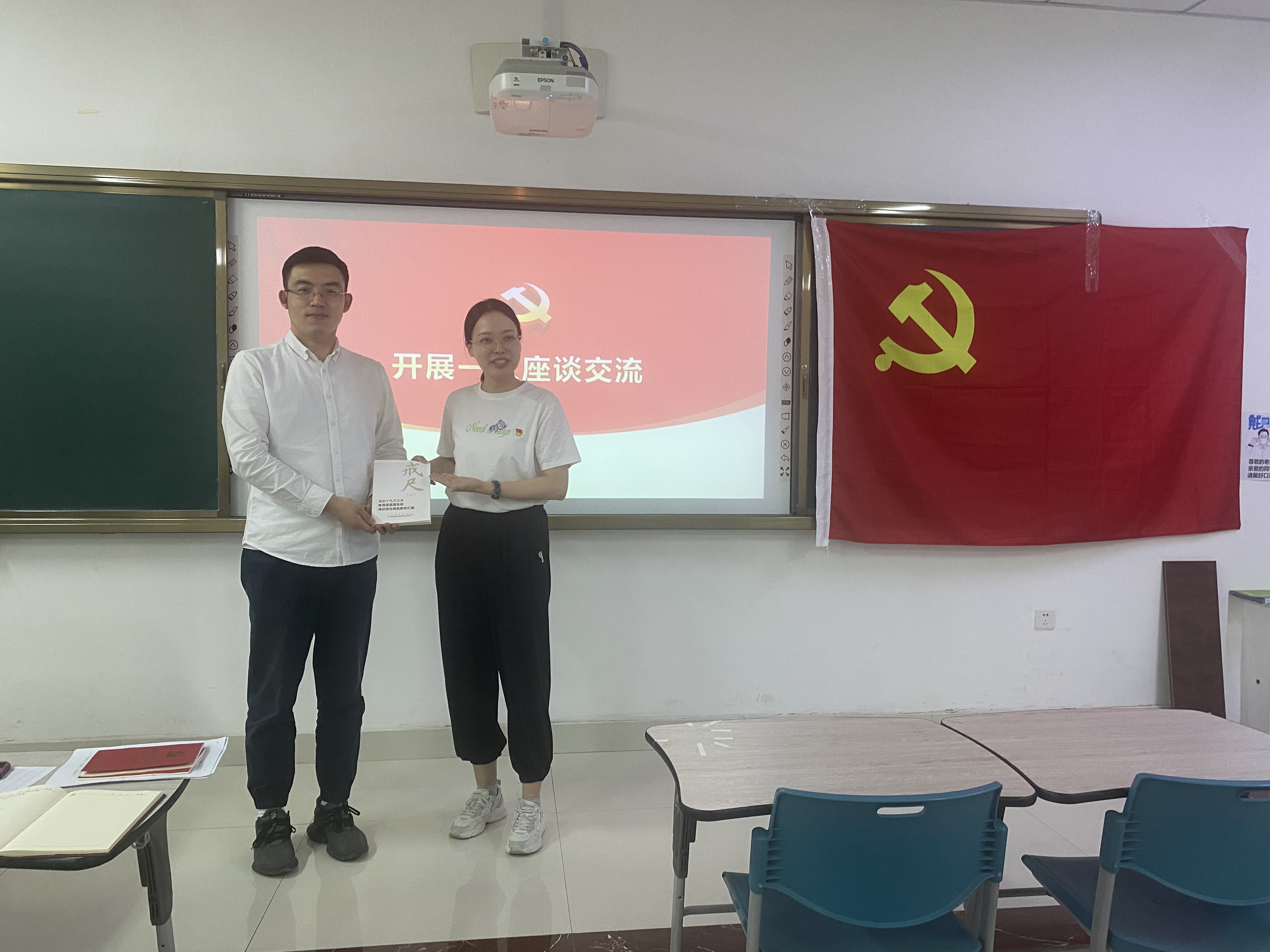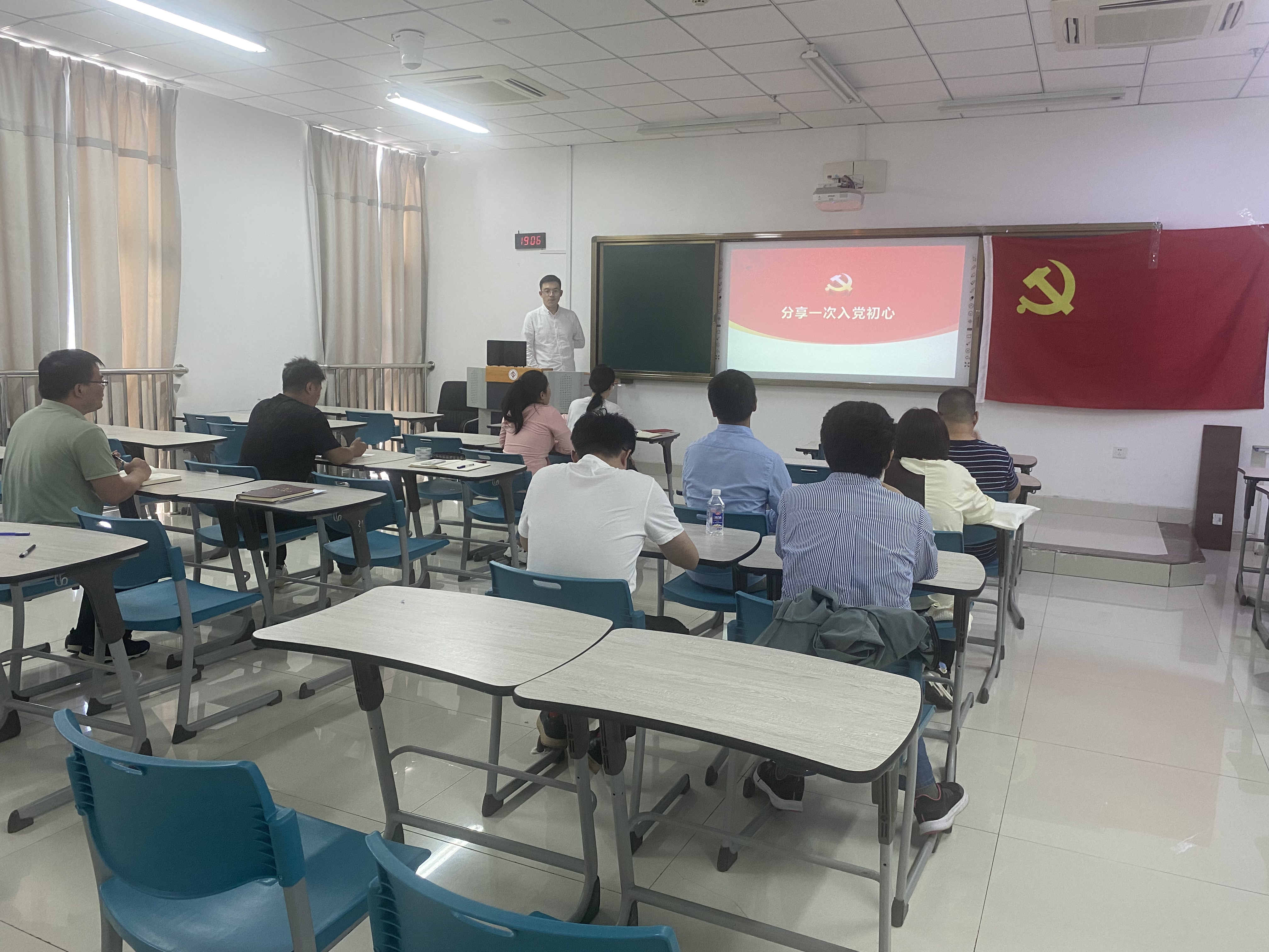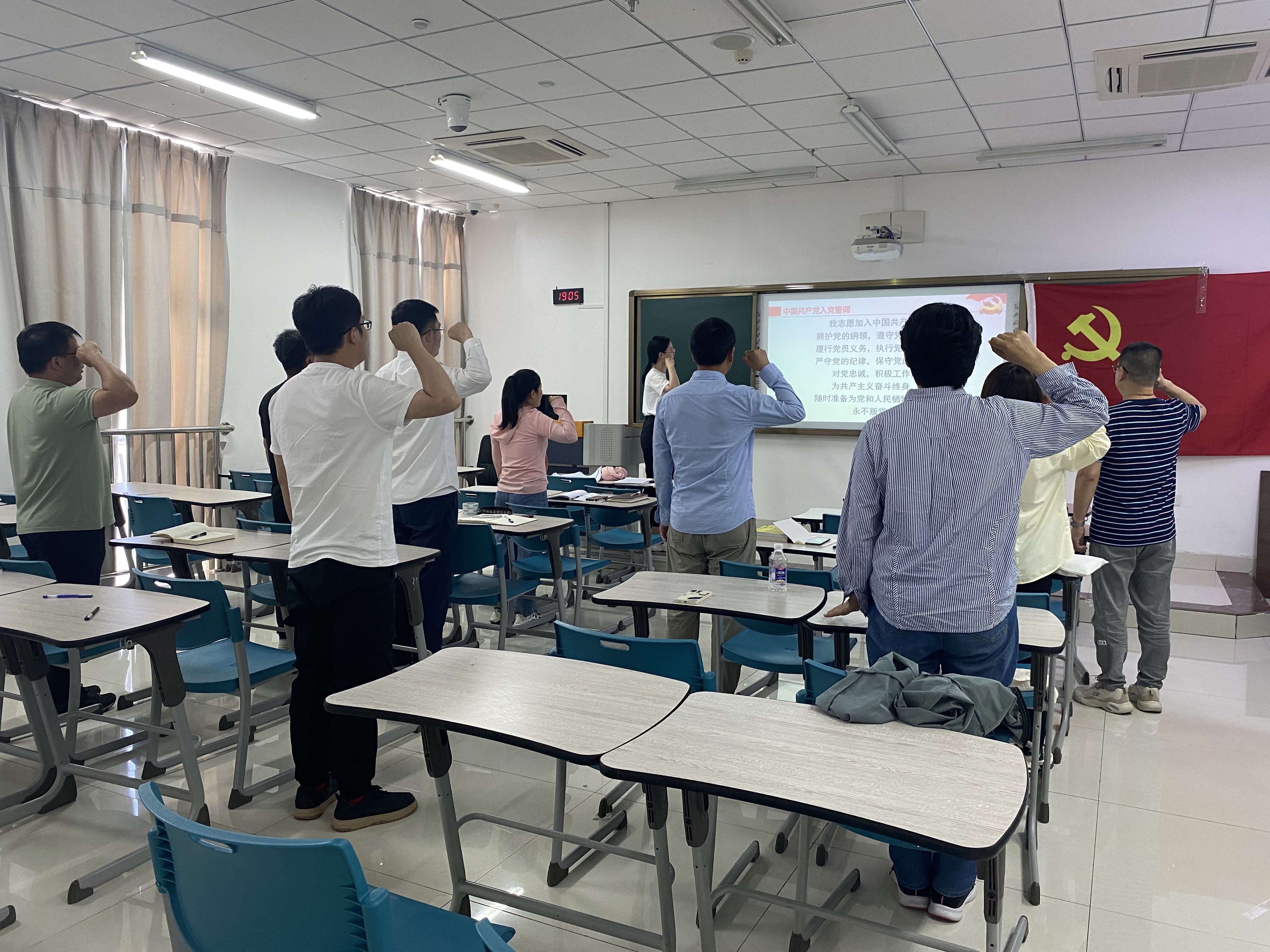 为进一步强化党员先锋模范作用,深入学习贯彻党的二十大精神、两会精神,发挥党建引领作用,以严明的纪律确保校区上下始终沿着习近平总书记指引的方向前进,5月24日下午,数学系党支部在C5楼I区308 教室开展5月份教职工政治理论学习及“温誓词,忆初心,亮承诺”——同过政治生日,共忆入党初心主题党日活动。全体党员及部分银龄援建教师参与此次活动。