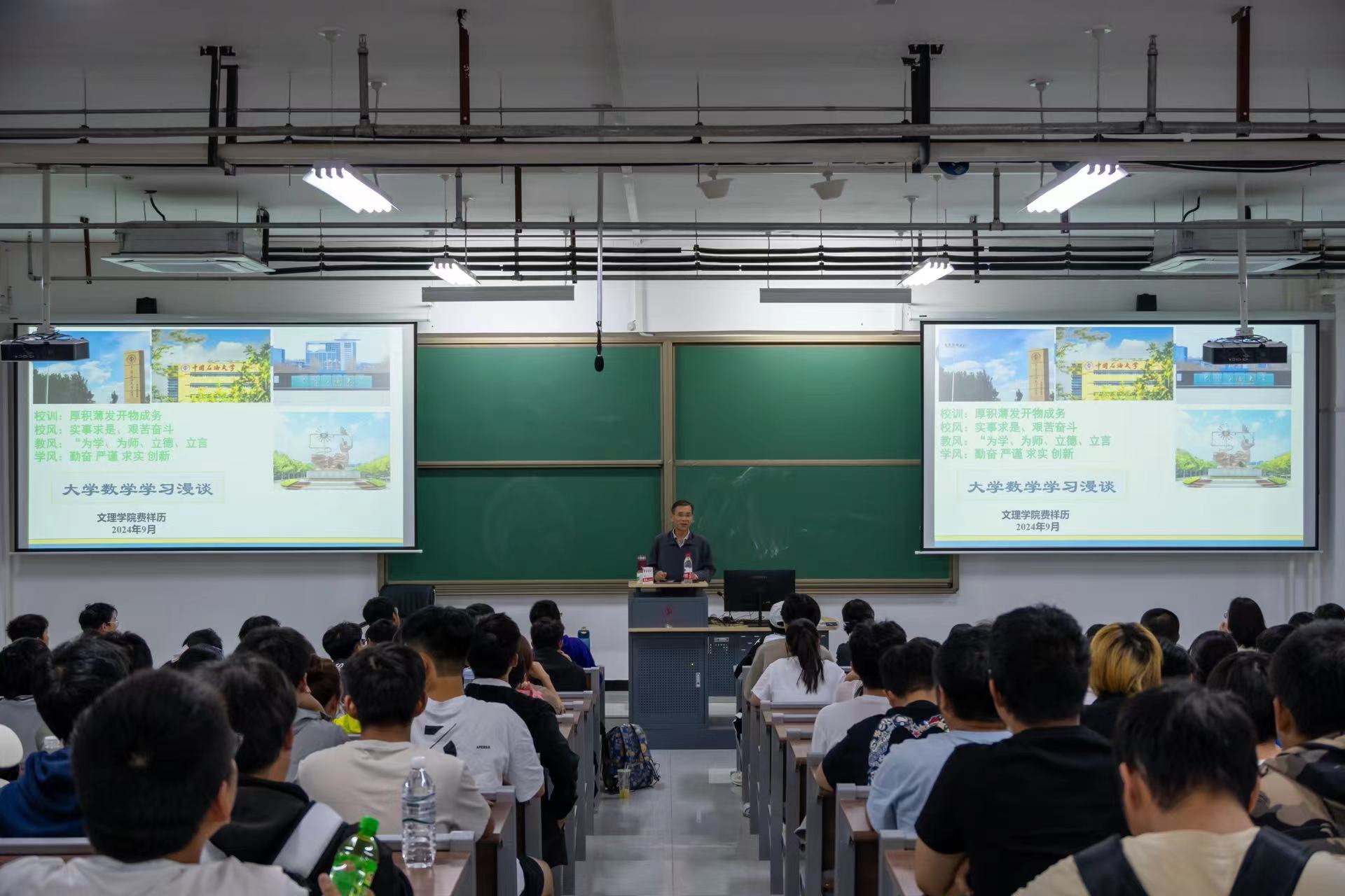 为了帮助大一新生更好地理解数学学习的意义,掌握有效的学习方法,文理学院/文化艺术学院数学系于9月25日下午20:25在C4-120教室举办了第九十三期崇文讲堂。来自中国石油大学(华东)的银龄教师费祥历教授受邀作了题为《大学数学学习漫谈》的专题讲座,各专业学生到场聆听交流。