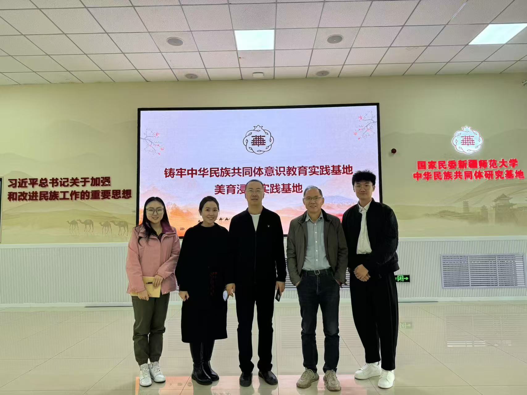 访问期间,殷文一行参观了新疆师范大学的铸牢中华民族共同体意识教育实践基地(美育浸润实践基地),深入了解了国家语言文字推广基地的建设和教学活动情况。