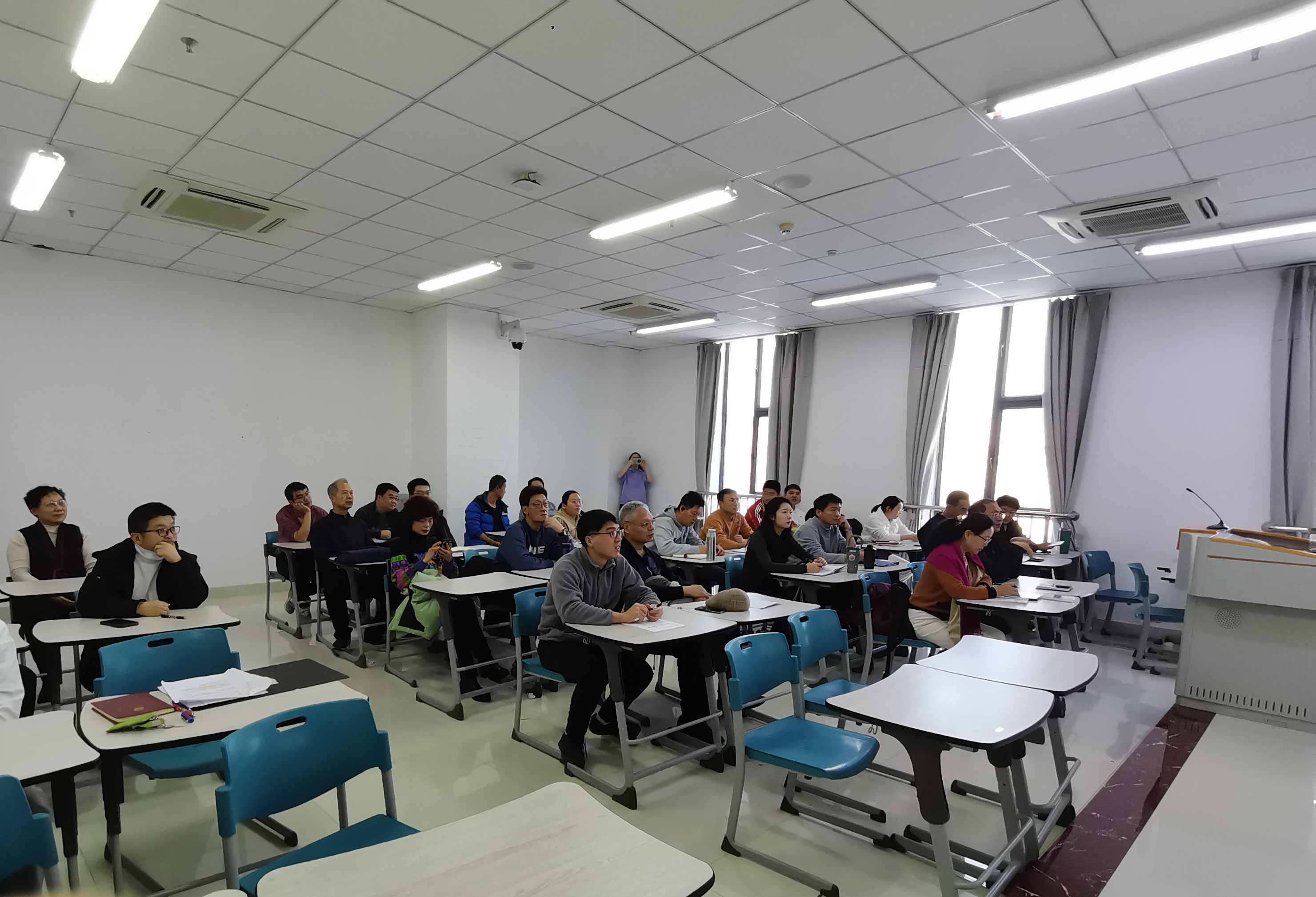 课程思政作为一种将思想政治教育融入专业课程的教学方式,对于培养学生的社会主义核心价值观、提升综合素质具有重要意义。体育系银龄教师王建民表示,物理科学教育和体育教育,两者在培养学生的综合素质方面各有侧重。虽然教学模式有差异,但在课程思政教学方面却殊途同归,思政教学都是以培养学生的品质、意志为目的,为党和国家培养新时代的人才,在思政教学中,需要将培养目标的举措落实在教学的始终。体育系教师刘磊表示,在体育教学过程中,针对学生易放弃、自私独立、堕于锻炼等问题,将中华体育精神、更高更快更强等思政元素融入课程,培养学生的团队精神、坚韧不拔的意志品质以及健康的生活方式。物理系来自湖南大学的银龄教师张智表示,目前课程思政元素形式可以多种多样,不仅可以引用典型的人物、事件等,也可以将哲学思维、辩证法等思政元素引入到教学内容中,这也是思政元素新的挖掘点。物理系教师王晶晶发言说,从课程思政的提出、学习、实践已经历了多年,作为一线的教师,我们应该以如何培养人、培养什么样的人为目标,反向思考如何构建课程内容和思政要点。教师们纷纷表示赞同并发表了对课程思政的理解和感悟。