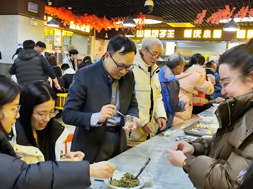 2024年12月20日,C5楼汇利美食广场洋溢着欢声笑语,学院教职工们汇聚于此,共同参与了一场富有特色的冬至包饺子盛会。这场简朴而温馨的活动,不仅让他们享受到了一顿丰盛的饺子大餐,更让他们体会到了如家般的温馨。学校党委常委、副校长兼校区党委书记刘坚,校区党委副书记、纪委书记徐长亮,学院领导班子成员、机关职能部门领导和教师代表以及学院师生代表参加活动。