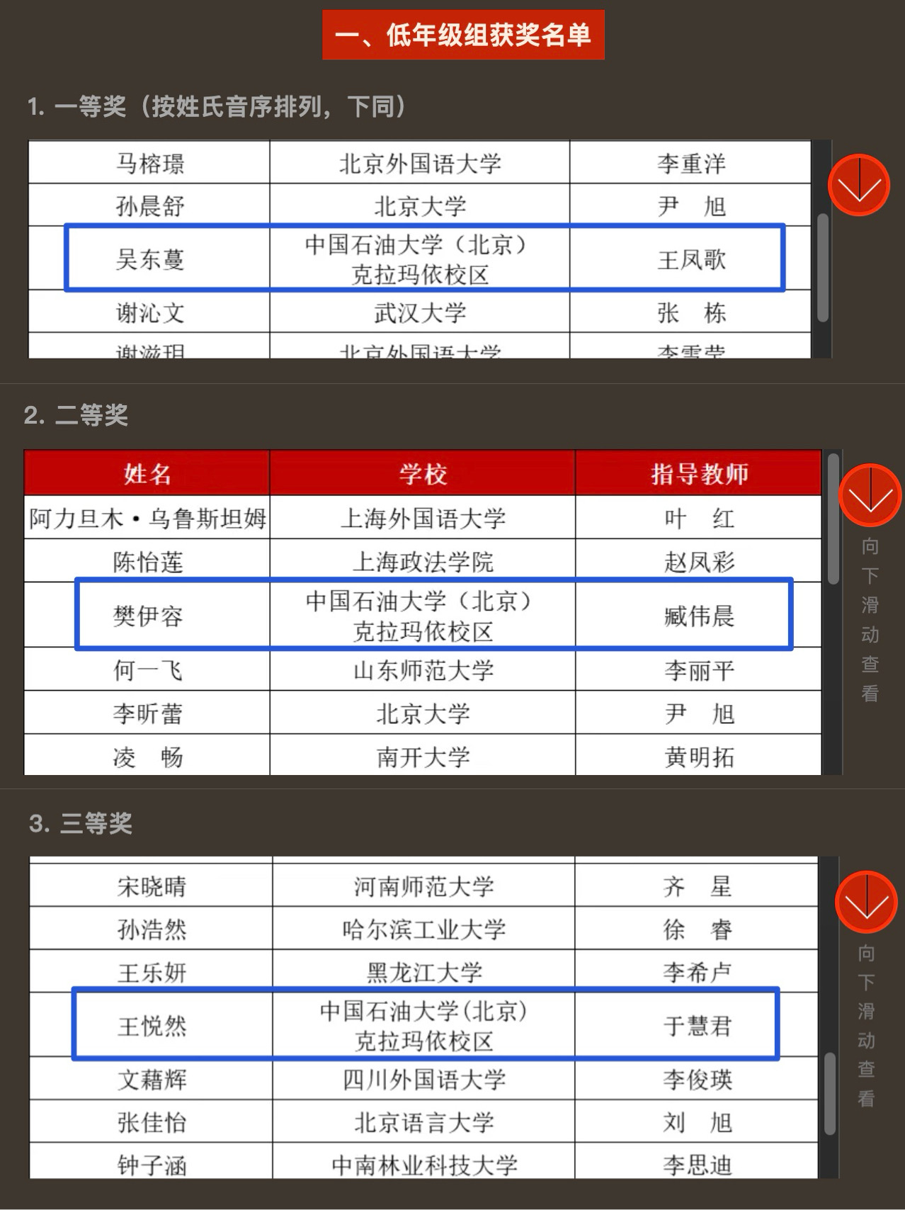 | 低年级组 | 俄语22-1班 | 吴东蔓 | 一等奖 |