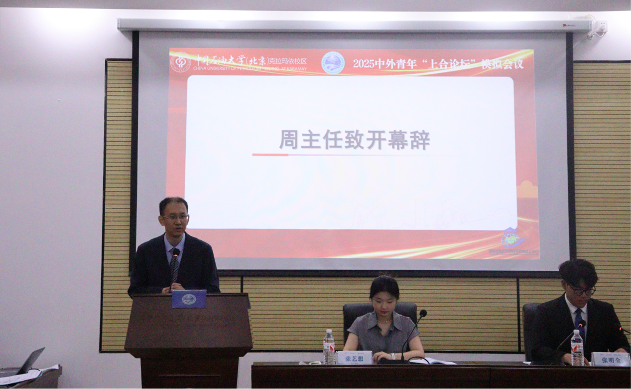 周新勇在致辞中代表市外事办公室向此次活动表示最热烈的祝贺,并向所有参与组织这次活动的工作人员表示衷心的感谢。他指出通过此次模拟会议,校区的广大青年们将有机会深入了解上合组织成员国间的政治、经济、文化等多个领域的合作,增进彼此间的理解与友谊。
