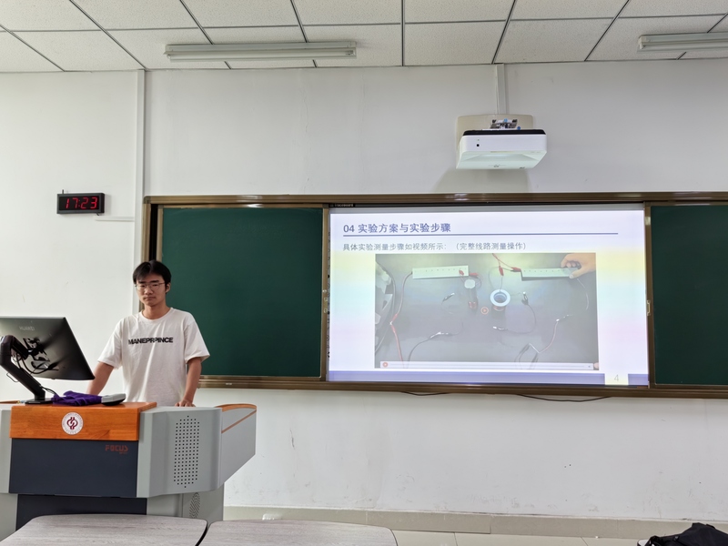 在答辩环节中,来自全校各学院的21支参赛队伍依次登台,围绕实验选题背景、方案设计、数据处理及创新点展开汇报。作品涵盖光学、电磁学、力学等多个领域,部分团队还展示了自主搭建的实验装置,体现了扎实的理论功底和动手能力。评委组从科学性、可行性和应用价值等角度进行提问,并提出优化建议,现场学术氛围浓厚。