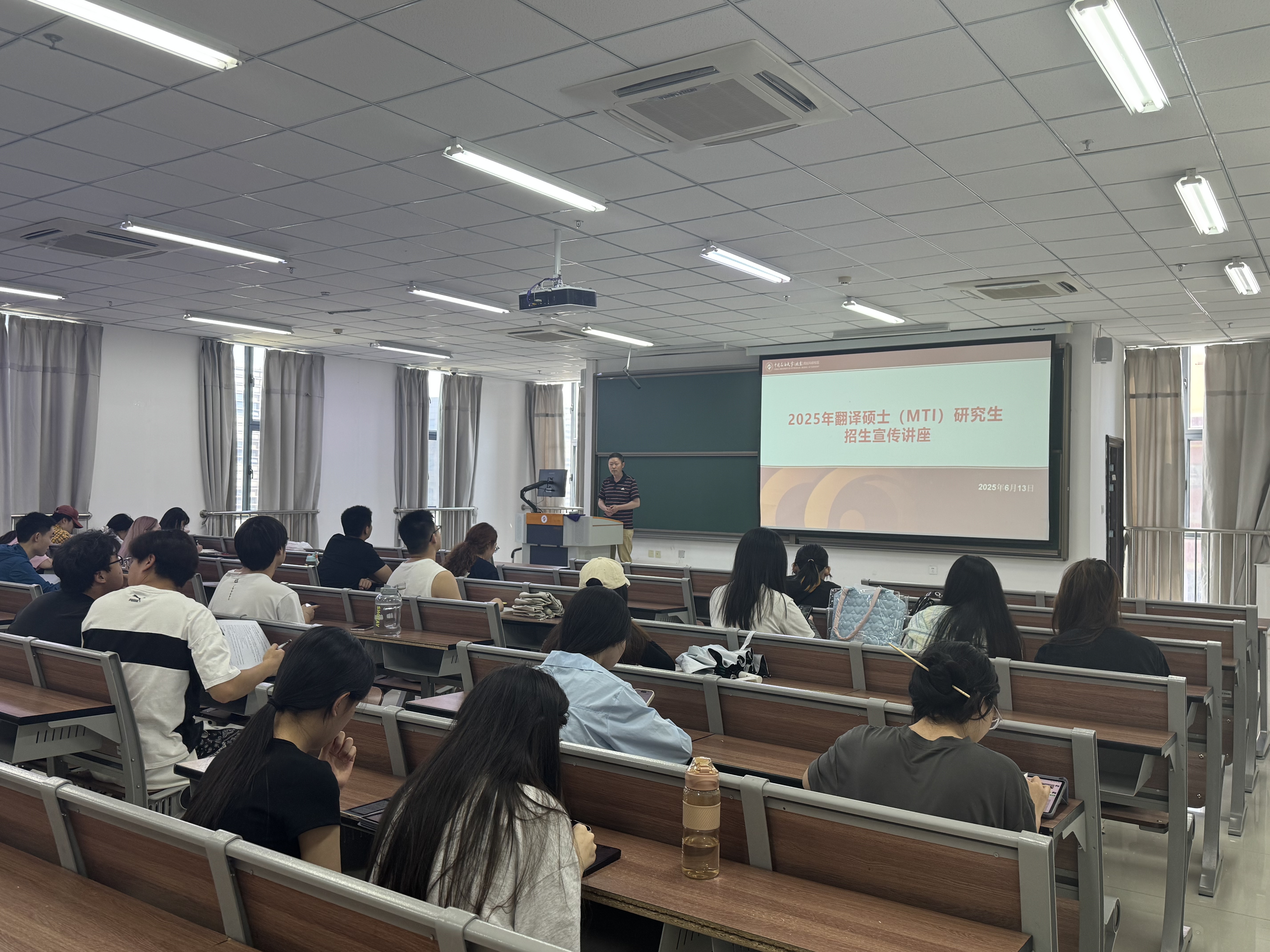 为积极响应校区研究生部关于提升研究生生源质量的工作要求,落实 2025 年研究生招生宣传计划,6 月 13 日,英语专业于 C5-I-401 教室面向 21 级和 22 级学生举办了一场精彩纷呈的研究生翻译专业硕士(MTI)招生宣讲会。此次活动由萨如拉老师主持,校区翻译研究生负责人孙旭东教授担任主讲嘉宾,旨在为同学们详细解读 MTI 专业特色,吸引优质生源。