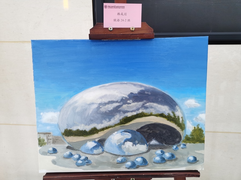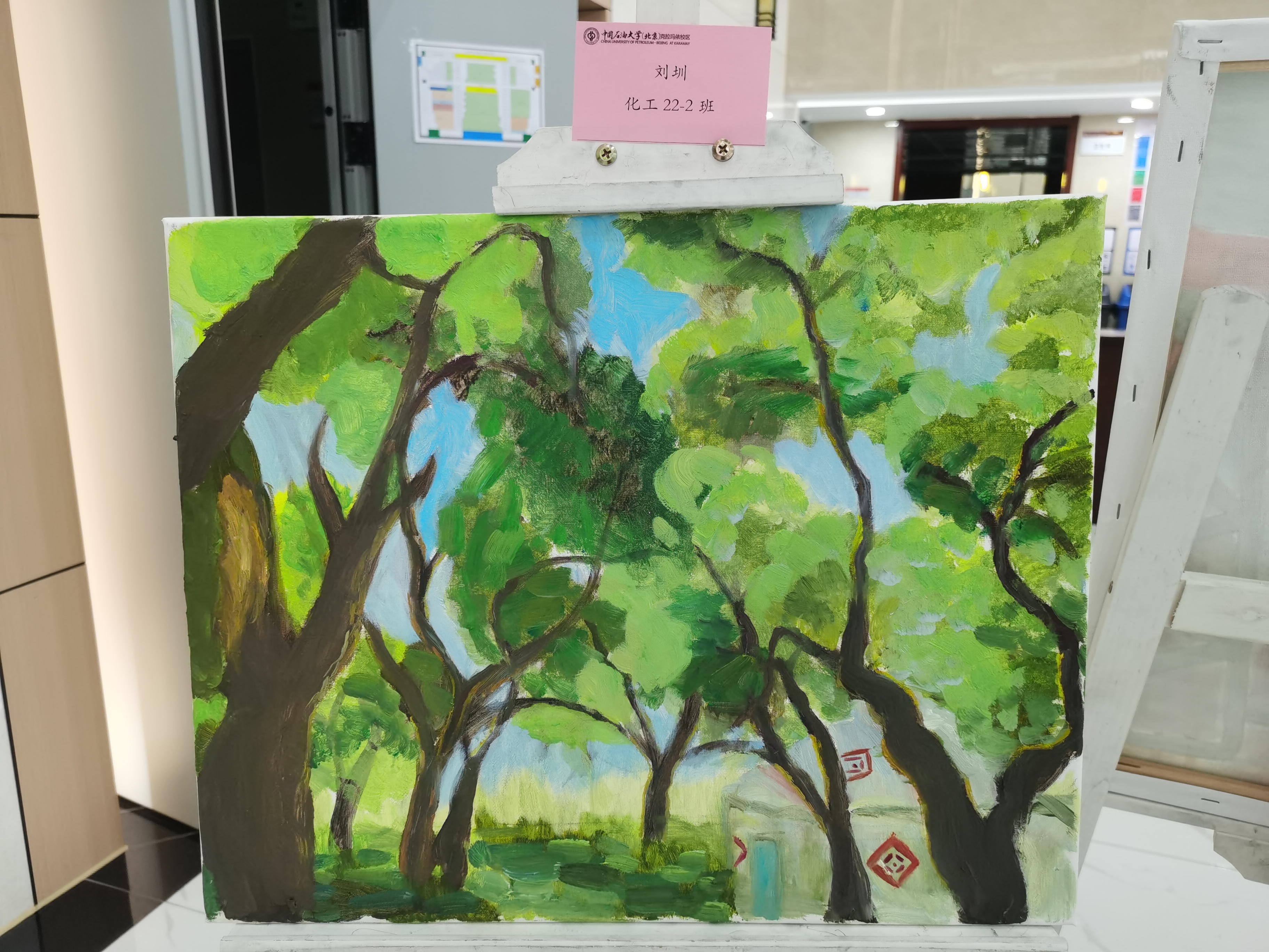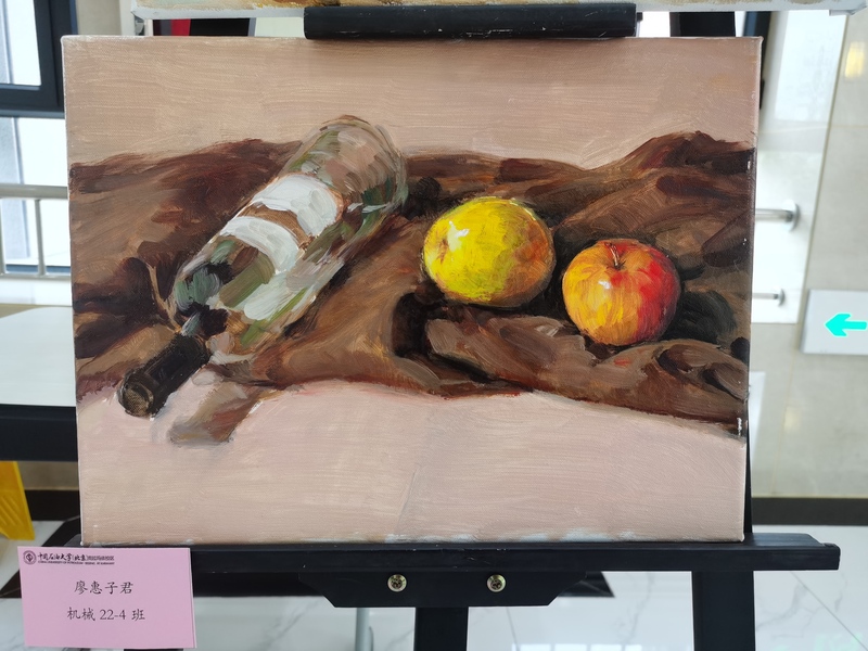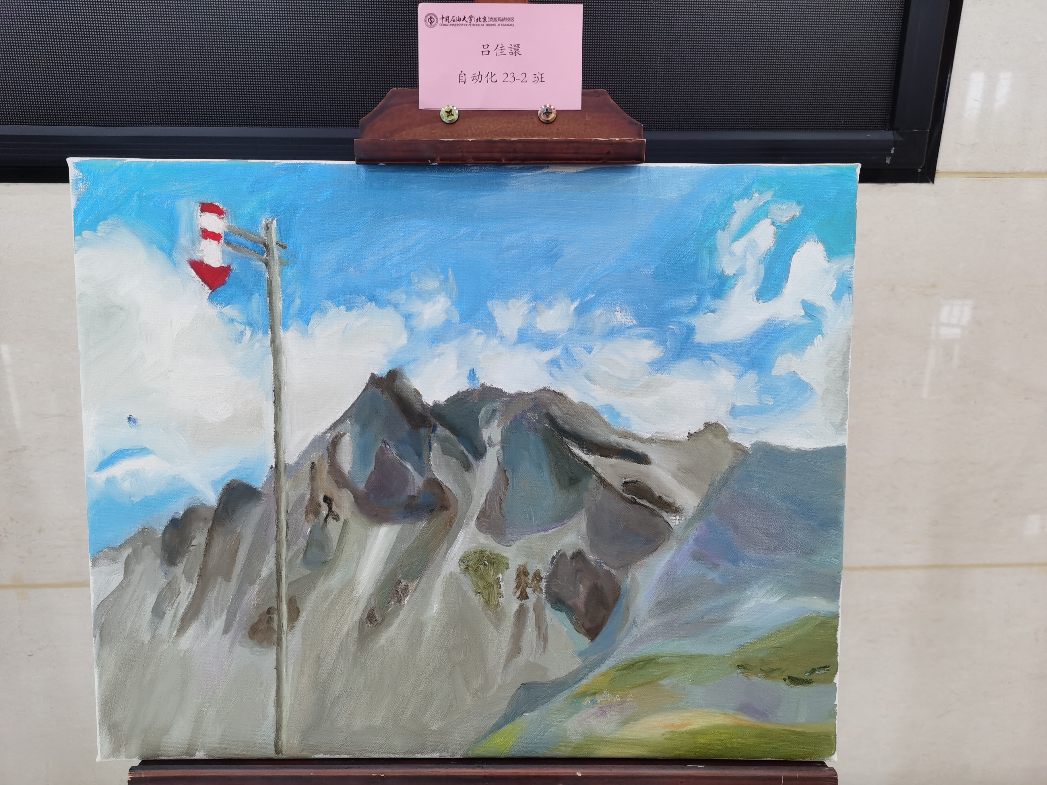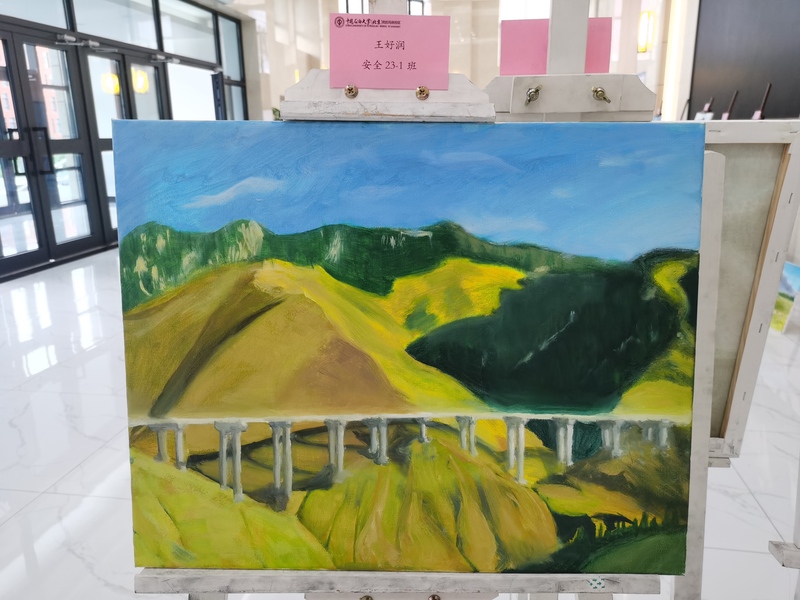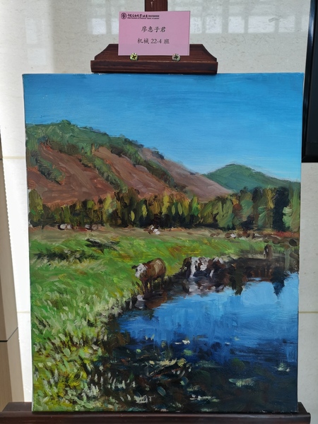 与此同时,《油画入门》课程的作品展也在现场同步举行。同学们以独特的艺术视角和创作才华,将校园生活、边疆风光融入画作,一幅幅色彩斑斓的油画作品吸引了众多观众驻足欣赏。展览不仅是对学生专业技能的一次检验,更是对他们创新思维和审美能力的生动展示。