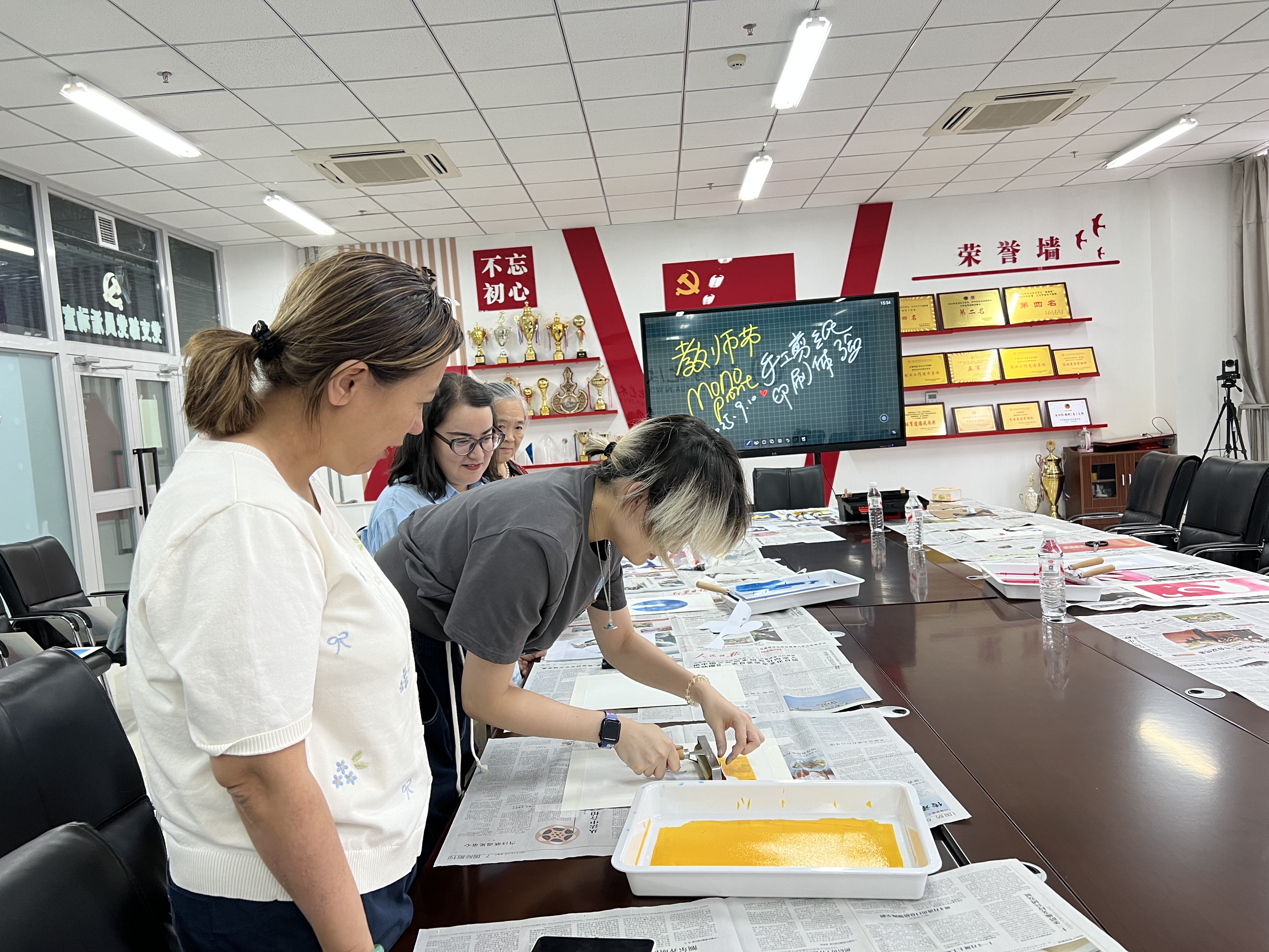 与此同时,在C5四楼会议室进行的“剪韵流彩·匠心印迹”MONO PRINT手工剪纸印刷体验活动也如火如荼地展开。教职工们亲手设计剪纸图案,创作独属版画作品,体验传统艺术与现代印刷的融合。在语言与艺术系青年教师朱宛玥的全程示范和指导下,即使是零基础的教职工也能创作出精美的作品。这些作品不仅可以现场装裱带回家,成为独一无二的教师节纪念,也让教职工们在创作中放松身心,激发创造力。