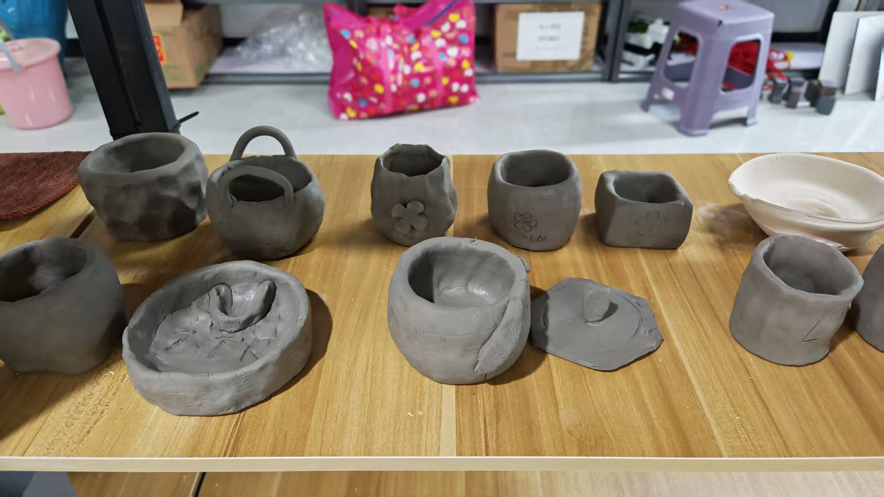 在“陶艺工坊·匠心传承”活动中,教职工们在语言与艺术系青年教师梁帅的指导下,亲手制作属于自己的陶杯与陶瓶。从原料到成品,每一个步骤都由双手亲自完成,体验了从无到有的创造过程。现场烧制的陶艺作品不仅展示了教职工们的巧手和创意,更传递了他们对生活的热爱和对美的追求。