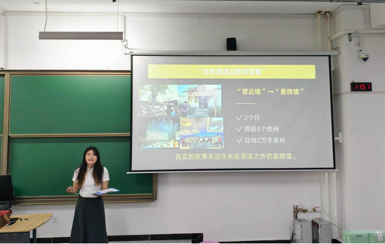 在学生暑期实习分享环节,刘宇翾、鞠秀琦、邓学睿、张明全、祝唱唱、龙坤澜、许多熹、张文鑫、张淑琴、李岳洋十位同学依次登台,结合自身在不同实习岗位的经历,分享了从最初的忐忑期待到熟练开展工作的成长历程,讲述了自己的实践故事,展现了新闻中心学子扎实的专业素养与积极的奋斗姿态,为在场2025级同学提供了宝贵的实践参考。