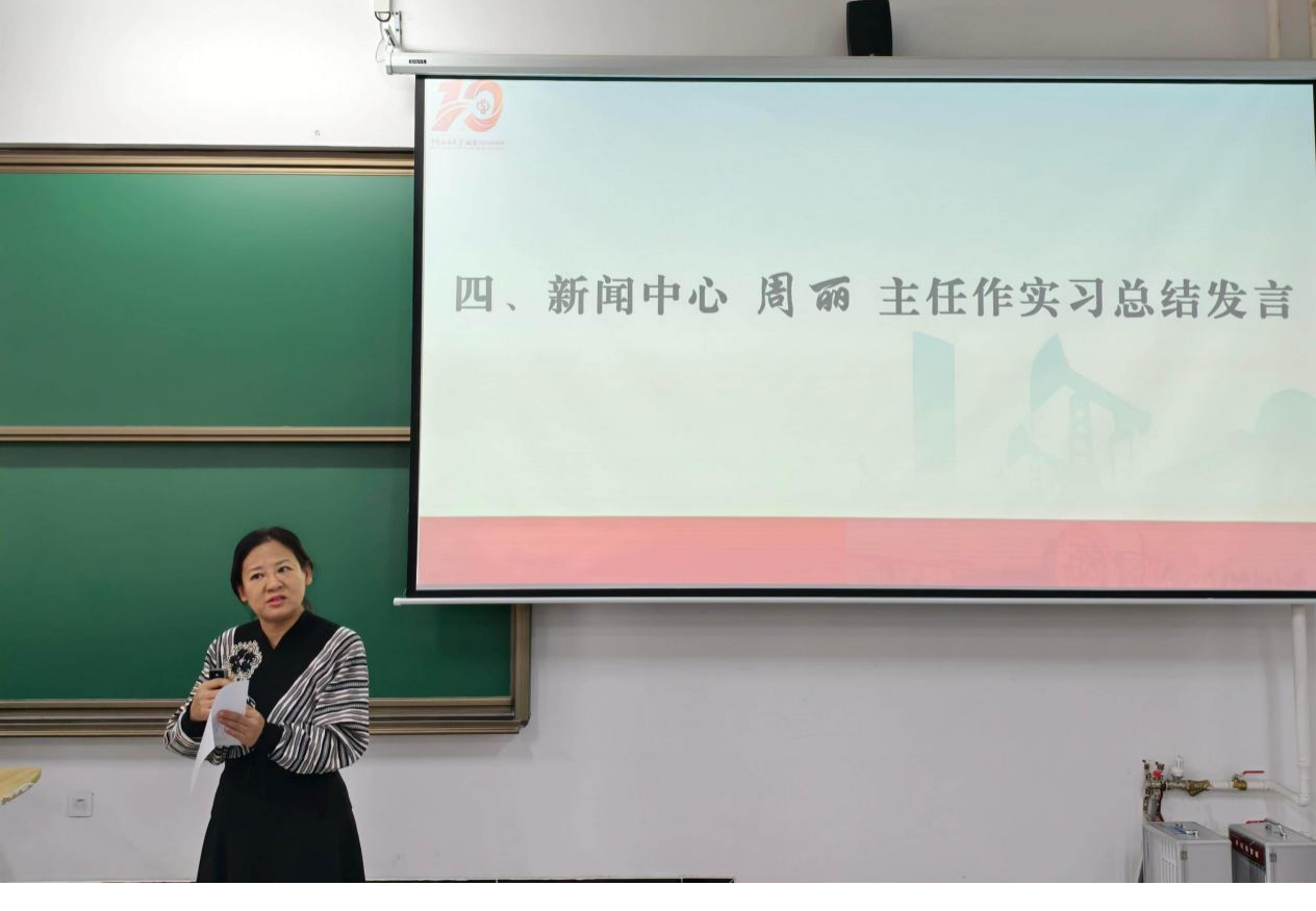 10月11日,文理学院/文化艺术学院新闻中心2025年暑期实习分享会暨表彰大会在C4楼121教室举行。校区党委副书记徐长亮、学院院长殷文、副院长杨妍、汉语言文学专业学科带头人韩德民、新闻中心主任周丽、语言与艺术系主任李博宇、新闻中心副主任郝建爱、宋萌露及阿依博塔・赛日克等领导老师出席,新闻中心全体新老学生与2025级汉语言文学专业全体学生共同参会,阿依博塔・赛日克担任主持人。