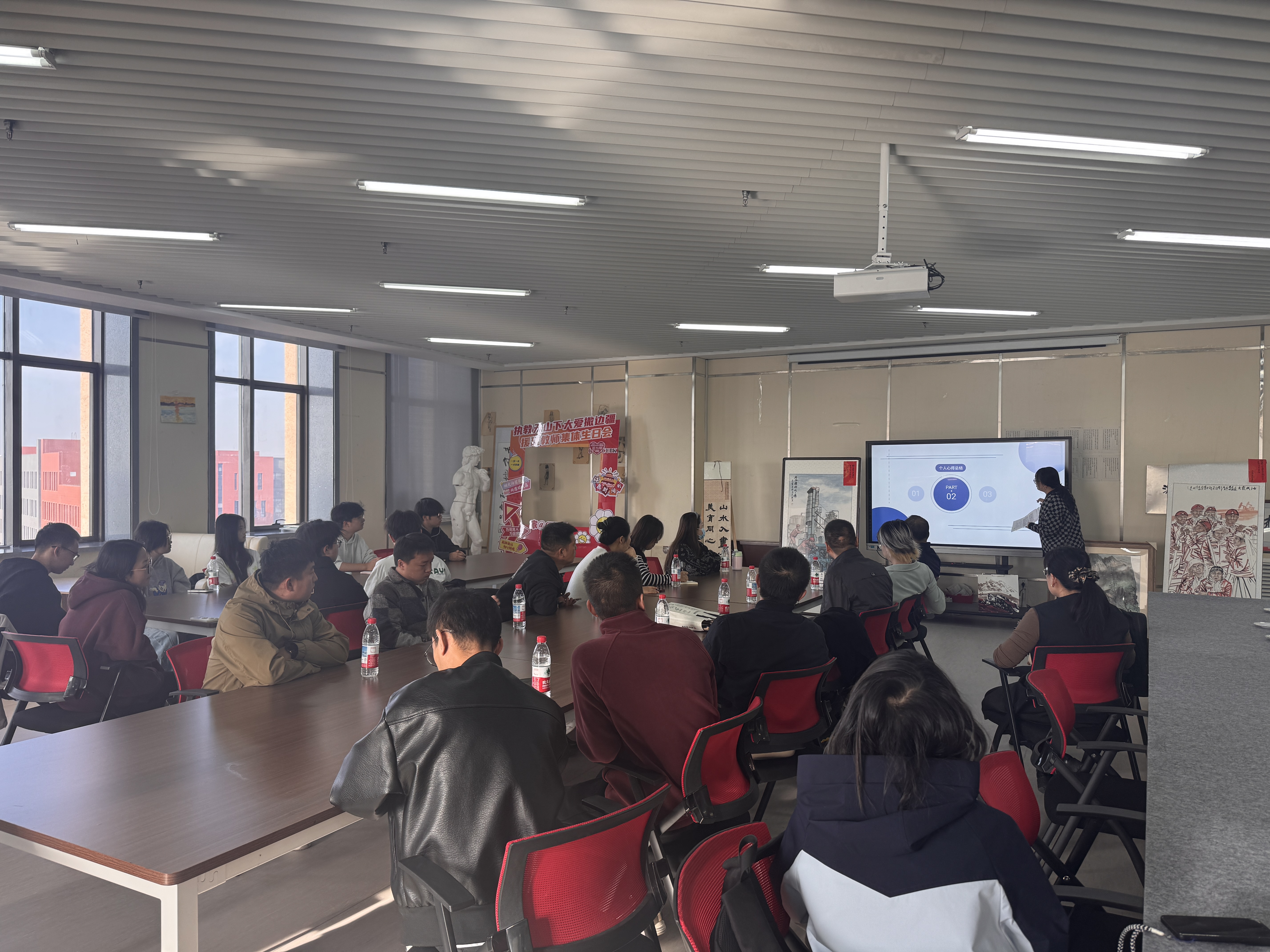 为庆祝中国石油大学(北京)克拉玛依校区建校十周年,深化校地美育共建,10月23日,文理学院/文化艺术学院与克拉玛依市王永盛美术名师工作室于“润物生”中石大艺术协会基地联合举办书画作品捐赠仪式。