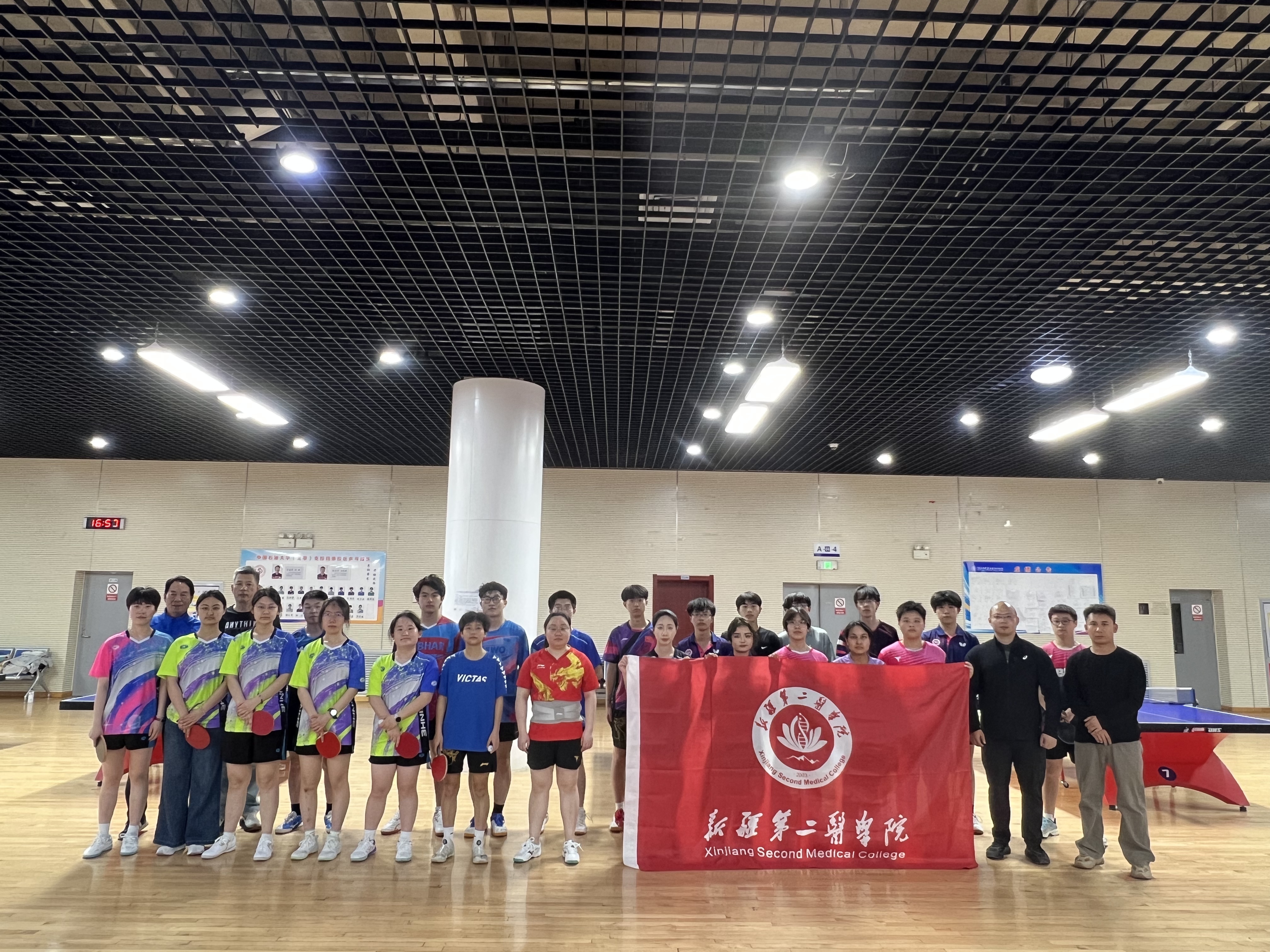 为深化校际体育交流,搭建师生竞技切磋与互动学习的平台,推动校园体育文化建设,近日,校区与新疆第二医学院乒乓球交流赛在校区红山湖体育馆内顺利举办。本次比赛由校区文理学院/文化艺术学院体育系赵京辉老师、王建民老师与新疆第二医学院带队老师共同指导,两校学生队员同台竞技、相互交流,展现了新时代青年学子的良好精神风貌。