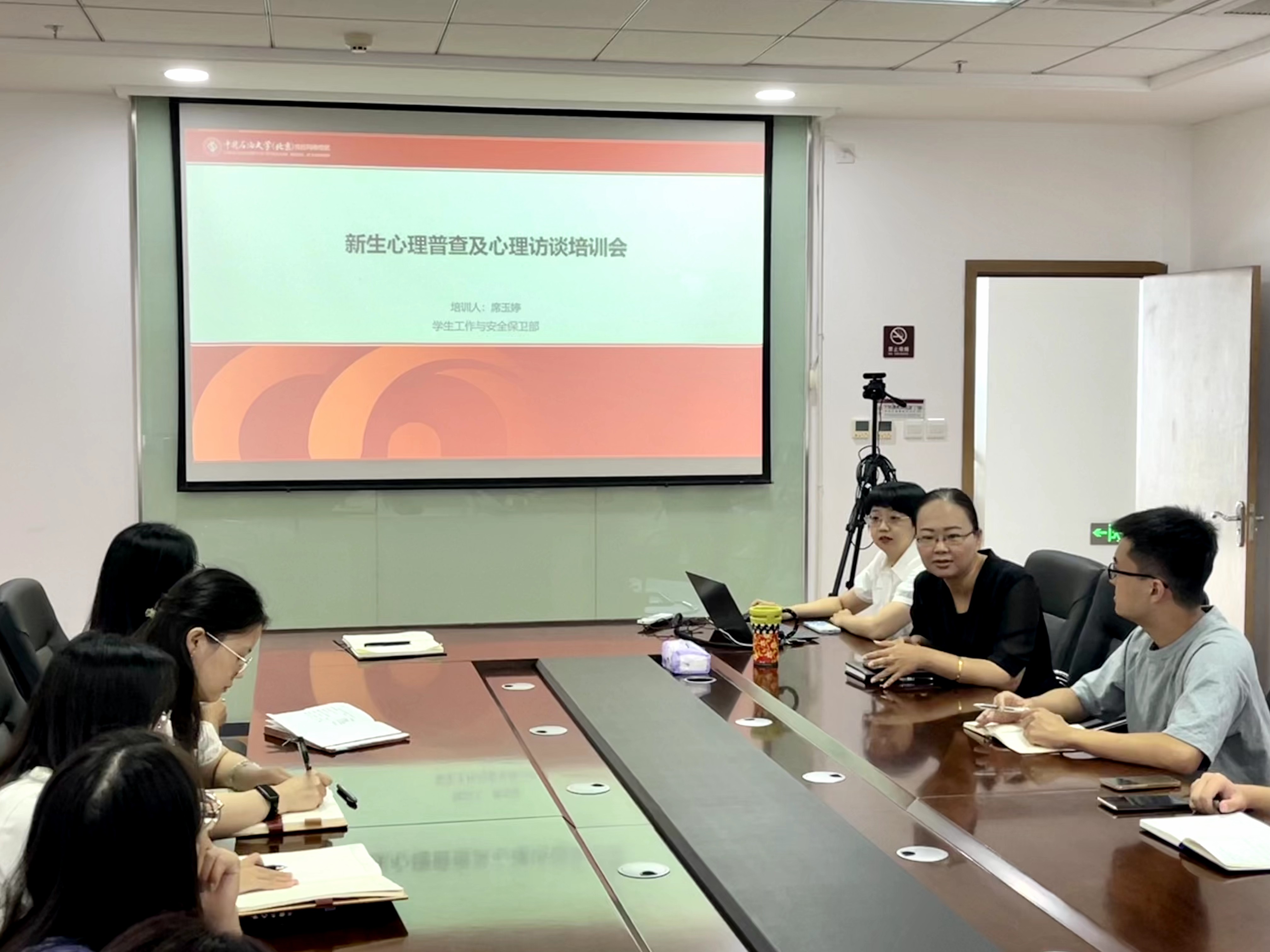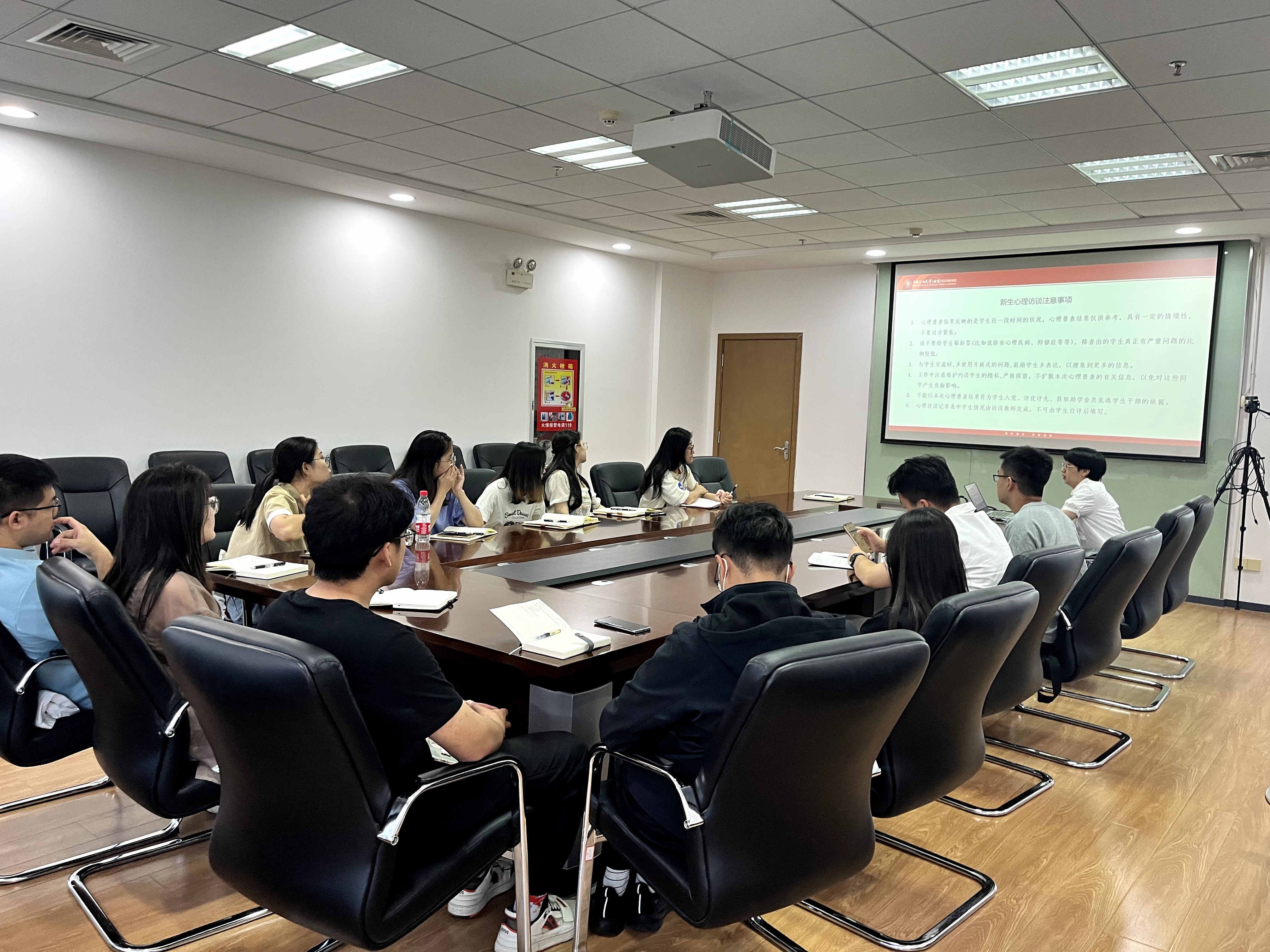 为科学全面了解校区学生的心理健康状况,学生工作与安全保卫部于 9 月 8 日上午,在 J1行政楼701会议室,召开新生心理普查与心理访谈培训会,2023级全体新生辅导员及学院团总支书记参加本次培训,会议由张璐璐老师主持,席玉婷老师担任主讲人。
