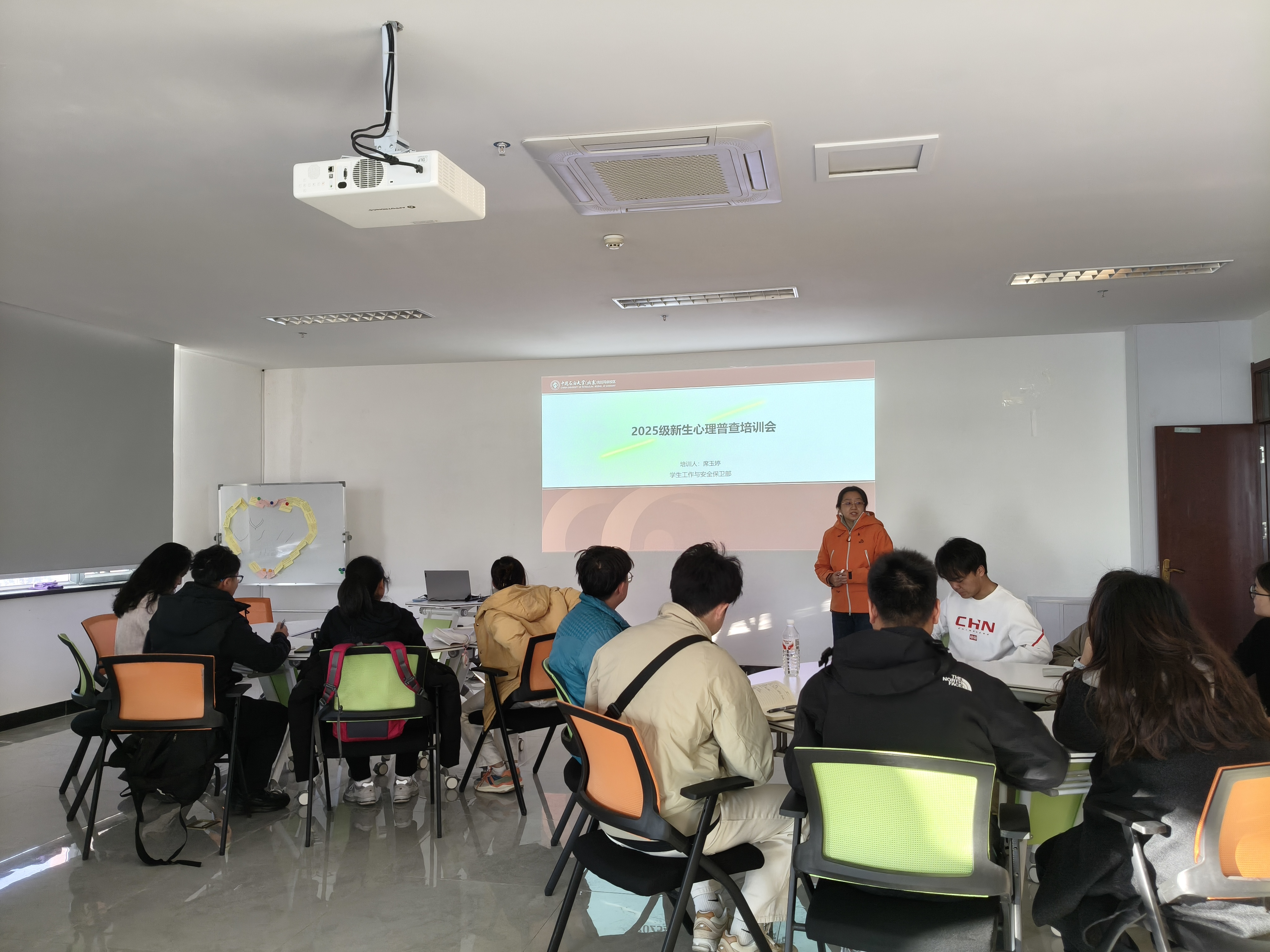 为有序推进新生心理普查,提升心理育人工作实效,2025年10月9日,学生工作与安全保卫部在学生活动中心308教室组织开展了2025级新生心理健康普查专题培训会,15名新生辅导员参加培训,学生工作与安全保卫部专职心理教师席玉婷主讲。