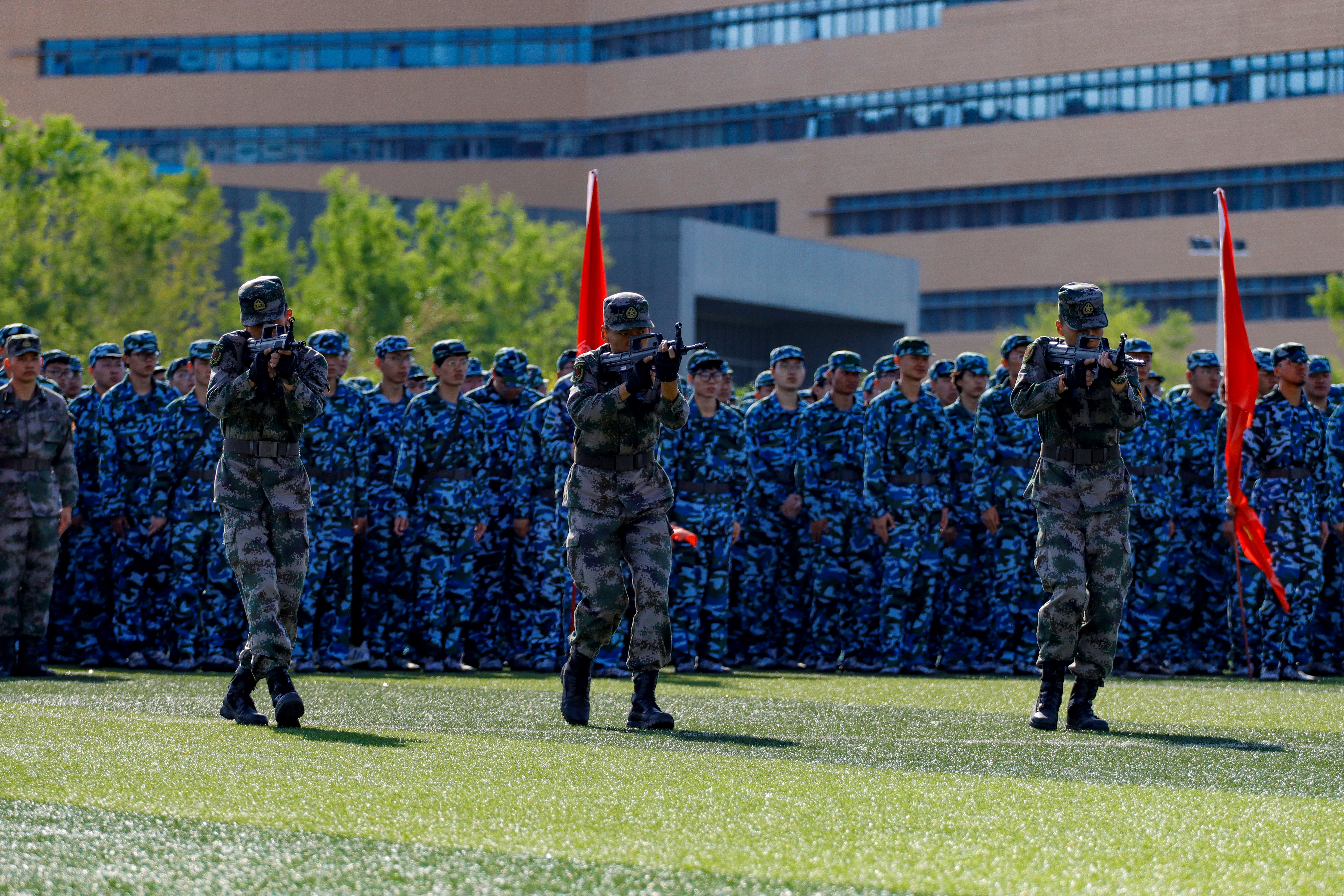典礼最后,胡庆喜代表校区党委向参训学生致以亲切的问候,向五一假期坚守在岗位上的学生教官和老师们表示衷心的感谢。他指出,军训是大学阶段必修课程教学的重要组成部分,是预备役兵员、后备预备役军官培养的重要途径。他强调,军训期间,承训教官和教师要认真在岗履责、全程跟训,及时解决学生训练中遇到的问题,关心关爱学生,做好思想和心理疏导工作,助力每一个学生安全、顺利、圆满地完成军训。他希望,全体参训学生坚定理想信念,厚植爱国主义情怀,高扬“志不求易、事不避难”的精神,以实际行动锻造中国军人铁一般的信仰、铁一般的信念、铁一般的纪律、铁一般的担当,在军训中得到锻炼与升华。