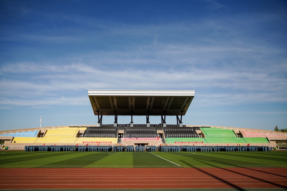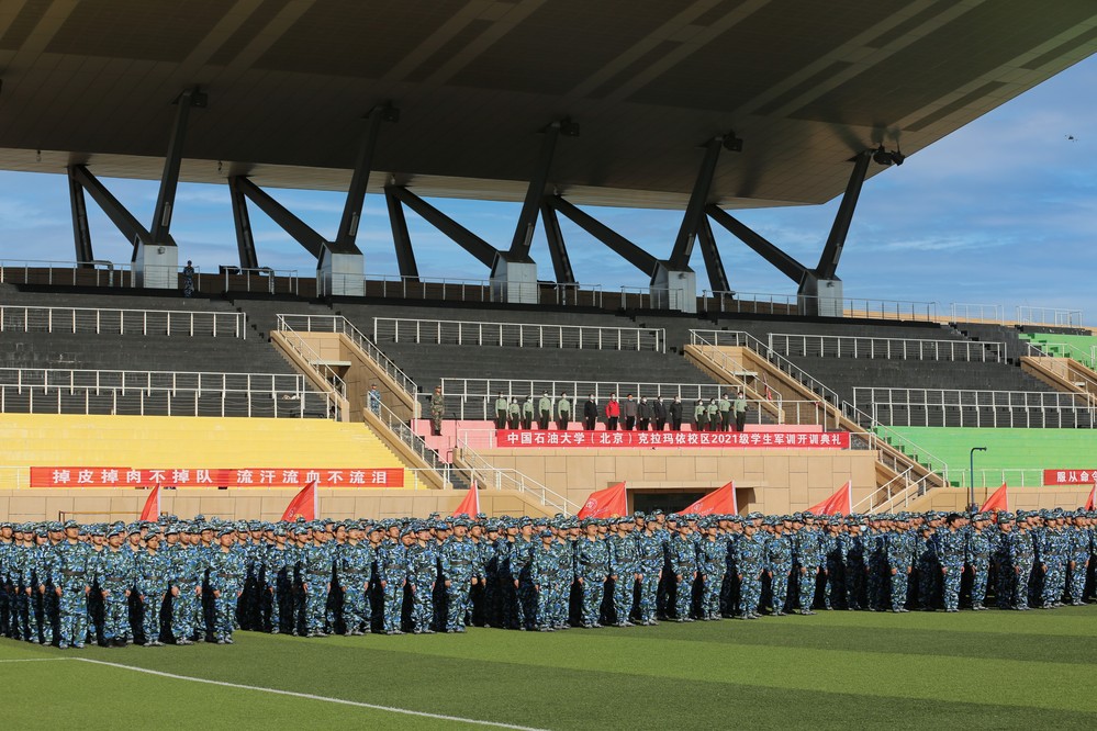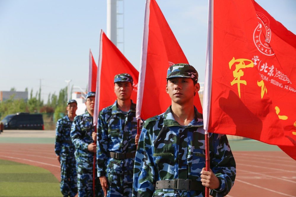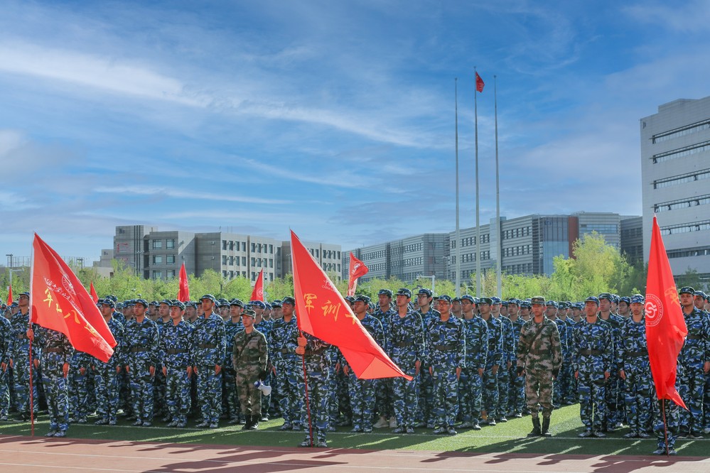 红旗操场上,校区2021级学生身着迷彩服,英姿飒爽、朝气蓬勃,以饱满的精神和昂扬的斗志,迎接他们的军训新生活。