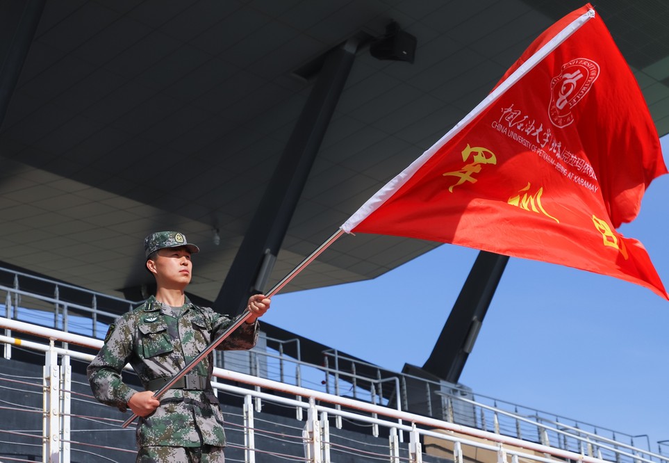 上午10时整,开训典礼正式开始。嘹亮的国歌声中,五星红旗冉冉升起,迎风飘扬在红旗操场上空。现场师生庄严肃立,向国旗行注目礼。