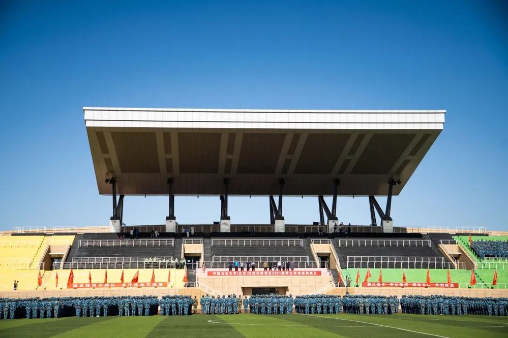 上午10时整,结训典礼在雄壮的国歌声中正式拉开帷幕。全体参训学生庄严肃立,目视五星红旗冉冉升起。三名由承训教官组成的护旗队手擎校旗,踏着校歌《我为祖国献石油》的昂扬旋律,正步走过主席台。