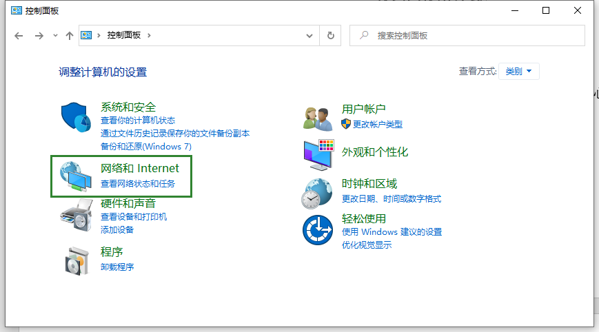 “开始”→“控制面板”→“网络和 Internet” →“网络和共享中心” →“更改适配器配置”,如下图: