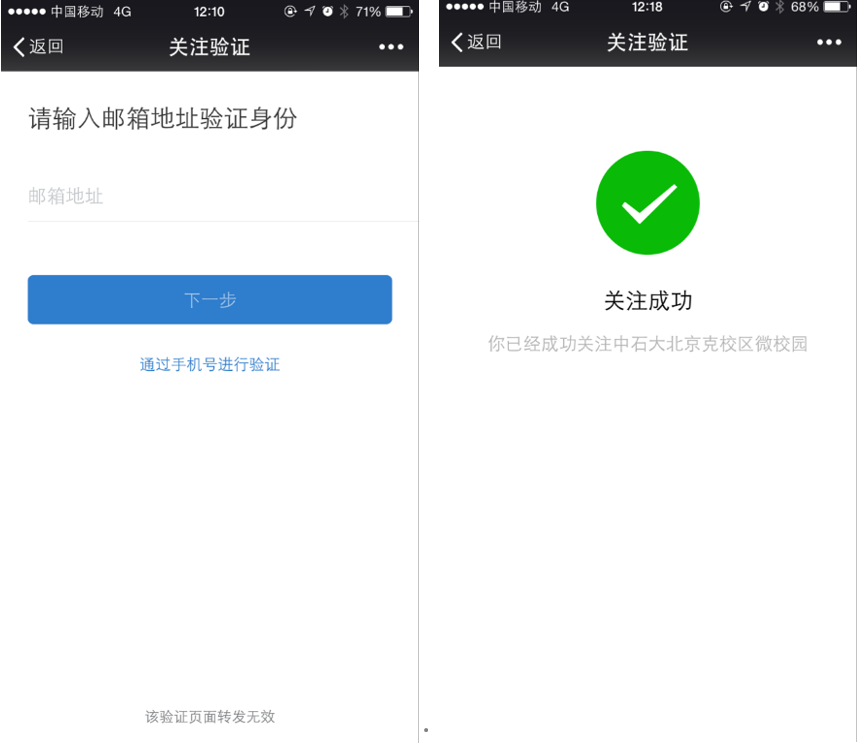 3)否则根据第四个图所示,进行邮箱验证:邮箱为校区开通的企业邮箱,职工号@cupk.edu.cn(教职工)/学号@st.cupk.edu.cn(学生);