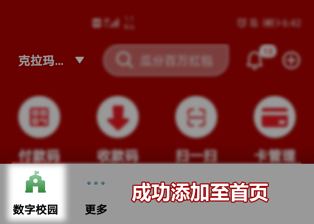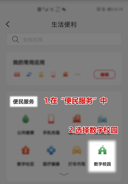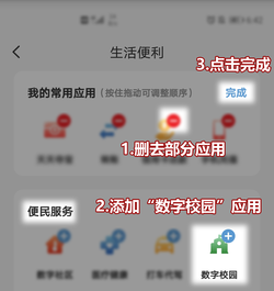 2.为方便校园卡的使用,可将数字校园添加到首页常用位置。