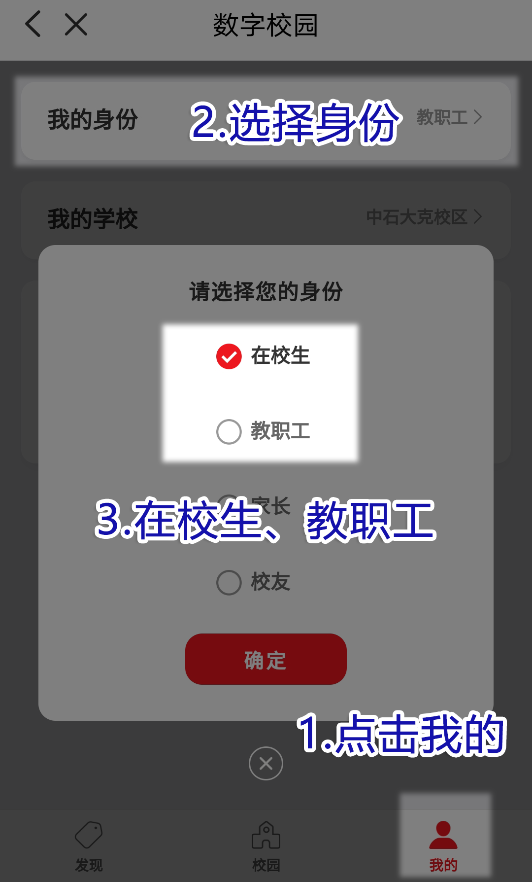 1.绑定“校园卡”后,才能开通线上充值、消费、水电缴费等业务。云闪付首页→在左上角定位城市→克拉玛依→更多→数字校园→确认授权→选择身份(在校生/教职工)→点击下方“校园”→上方“选择学校“→选择“中石大克校区” →应用服务→一卡通→立即添卡→立即绑卡→核实填写信息(学工号:填写学号或工号,密码:身份证后六位)→绑卡成功。