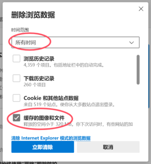 步骤3:清除浏览器缓存,重新连接wifi,重新访问访问认证页面(网络地址:10.0.1.1)。清除浏览器缓存方法:打开浏览器,按下快捷键ctrl+shift+delete,时间范围选择“所有时间/时间不限”,清理范围选择“缓存的图片和文件”,点击确定。如果你的浏览器无法执行,请自行搜索清除缓存方法。如仍无法解决,继续进行下一步。