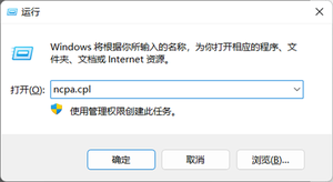 步骤1:按下电脑的win键和R键,并输入NCPA.CPL (大小写均可)