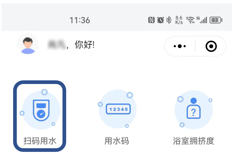进入“扫码用水”,并扫描水控机上的二维码,即可打开水控机。