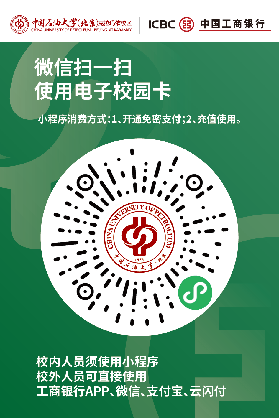 1、微信/支付宝小程序中搜索“中石大克校区”或“CUPK校园卡”;