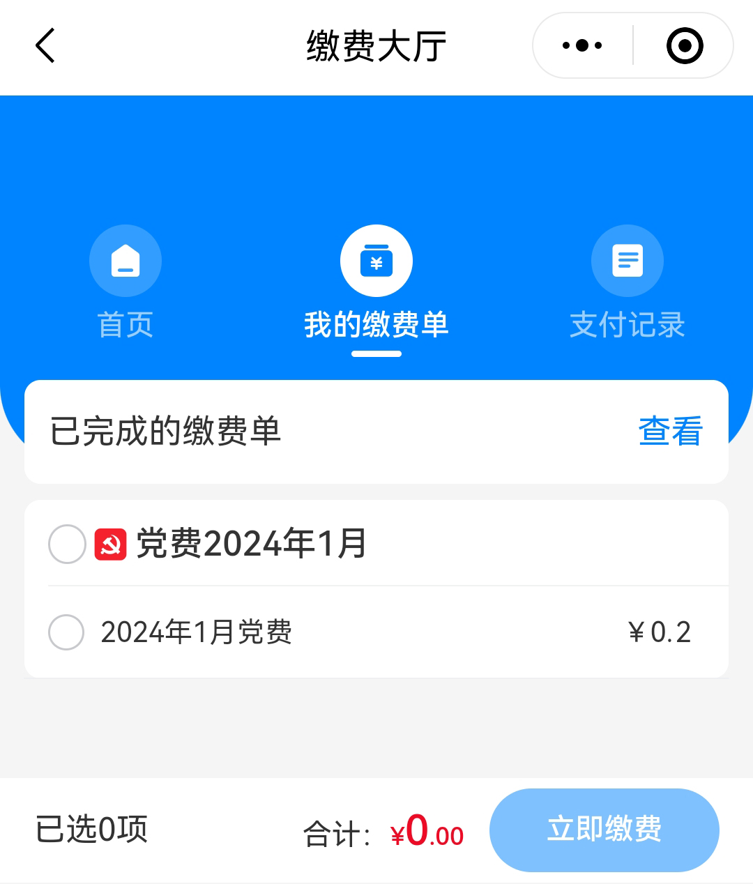 也可进入“我的缴费单”查询当前待缴费清单,勾选后缴纳。