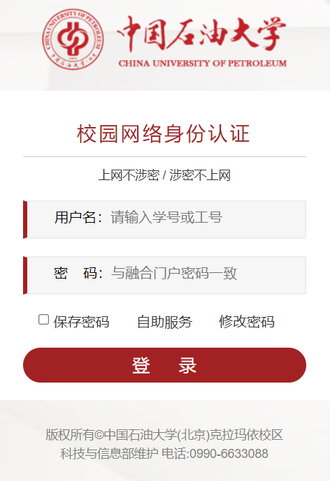 密码:克校区编制师生与克校区融合门户密码一致;校本部编制师生与校本部门户密码一致。