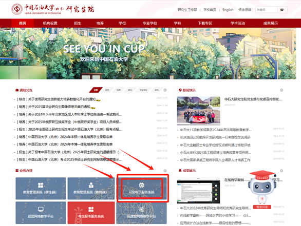 1. 登录研究生部首页https://www.cupk.edu.cn/yjsb/,点击“可信电子服务系统”,使用“统一登录入口”登录。