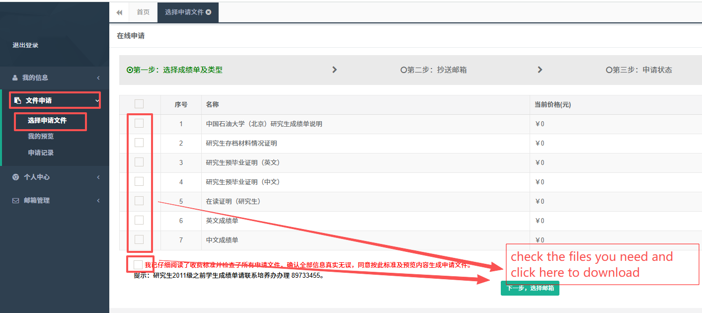 Select email and click【下一步,完成在线申请】. The file will be sent to your email address.