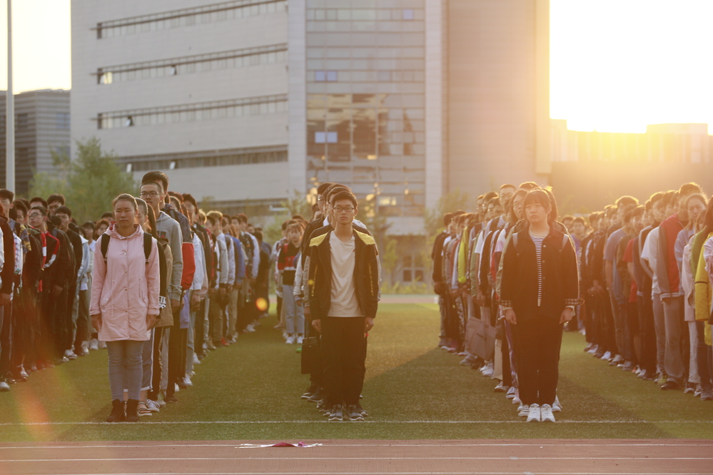 清晨八点半整,迎着初升的朝阳,升国旗仪式正式开始。国旗仪仗队的同学们迈着整齐划一的步伐,护送着鲜艳的五星红旗正步走向旗杆。随着庄严的国歌声奏起,全场肃立,全体师生目送五星红旗冉冉升起,一同高唱国歌,鲜艳的五星红旗迎风飘扬,在阳光下熠熠生辉。